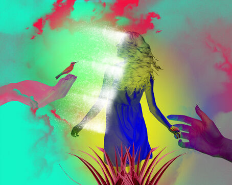 Series of collages around the theme of rebirth: birth of a human being, birth of a language, birth of a city, birth of a work, birth of faith, birth of a friendship