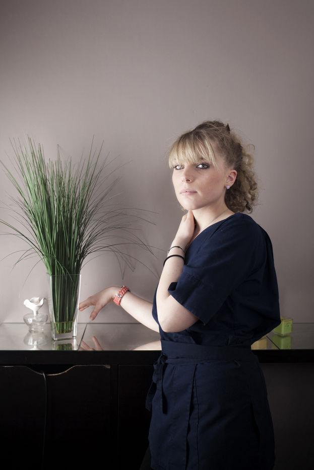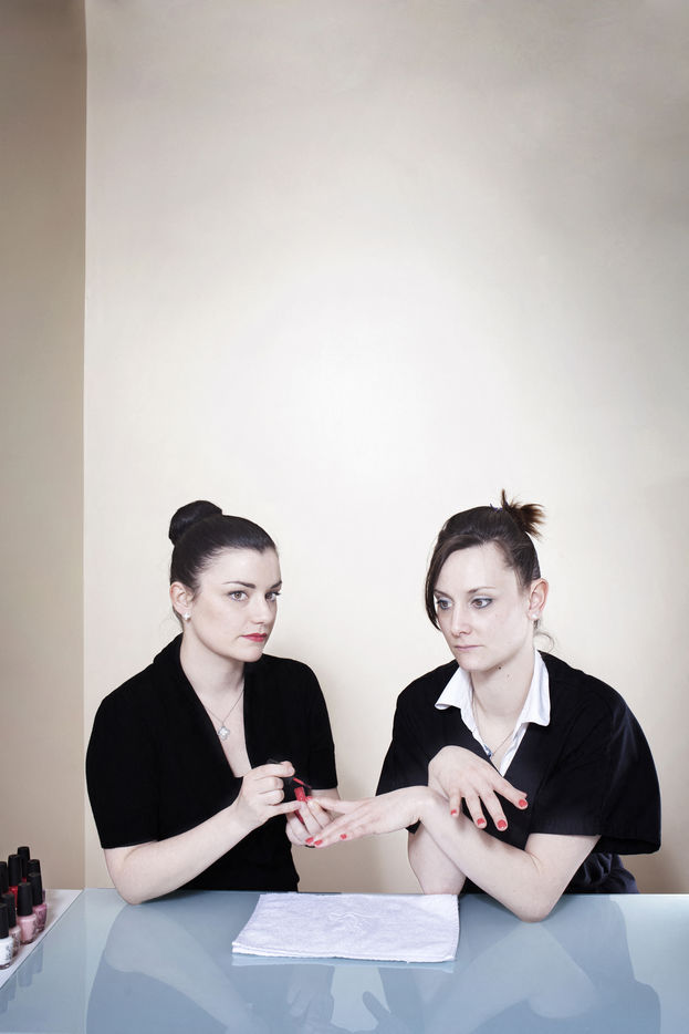 Cette série a lieu dans le confinement des instituts de beauté parisiens. Qui sont ces femmes et hommes dont la fonction est le bien-être et l?apparence des client(e)s ? Ceux à qui on confie son corps et souvent plus ? . L?apparence de ceux-ci est ici vitrine et décor de l?institut.
