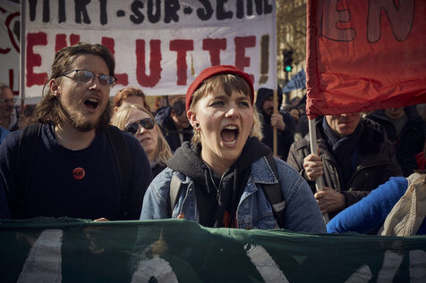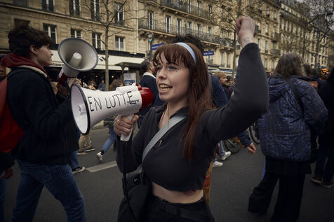 11 ème journée de manifestation contre la reforme des retraites adoptée par 49.3 par le gouvernement d'Elisabeth Borne. 400.000 manifestants selon la CGT, 57.000 d'après la préfecture de police, entre Invalides et Place d'Italie tentent de peser sur la decision du Conseil D'etat.