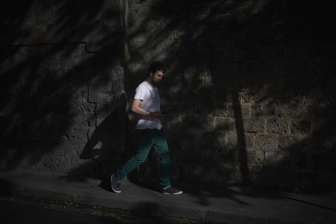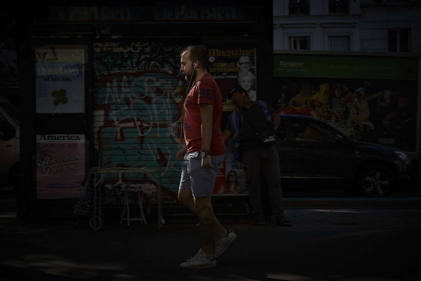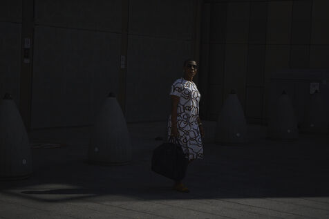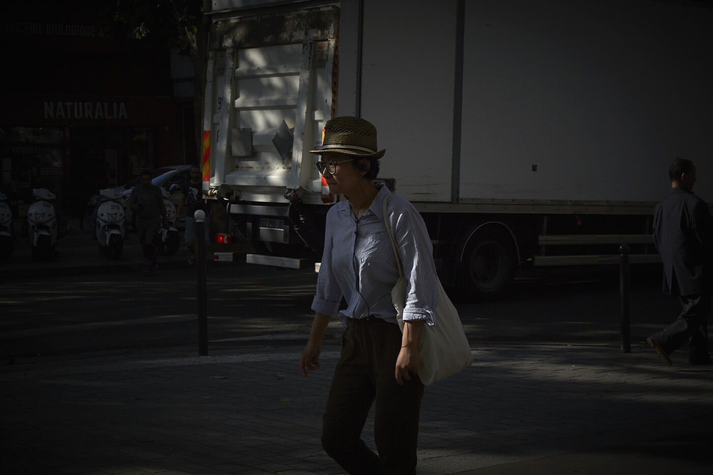 Dans la lumière matinale printanière, chacun vaque. Les trottoirs se transforment en théâtre d'ombre. Travailleurs, étudiants, femmes au foyer en deviennent les acteurs anonymes.