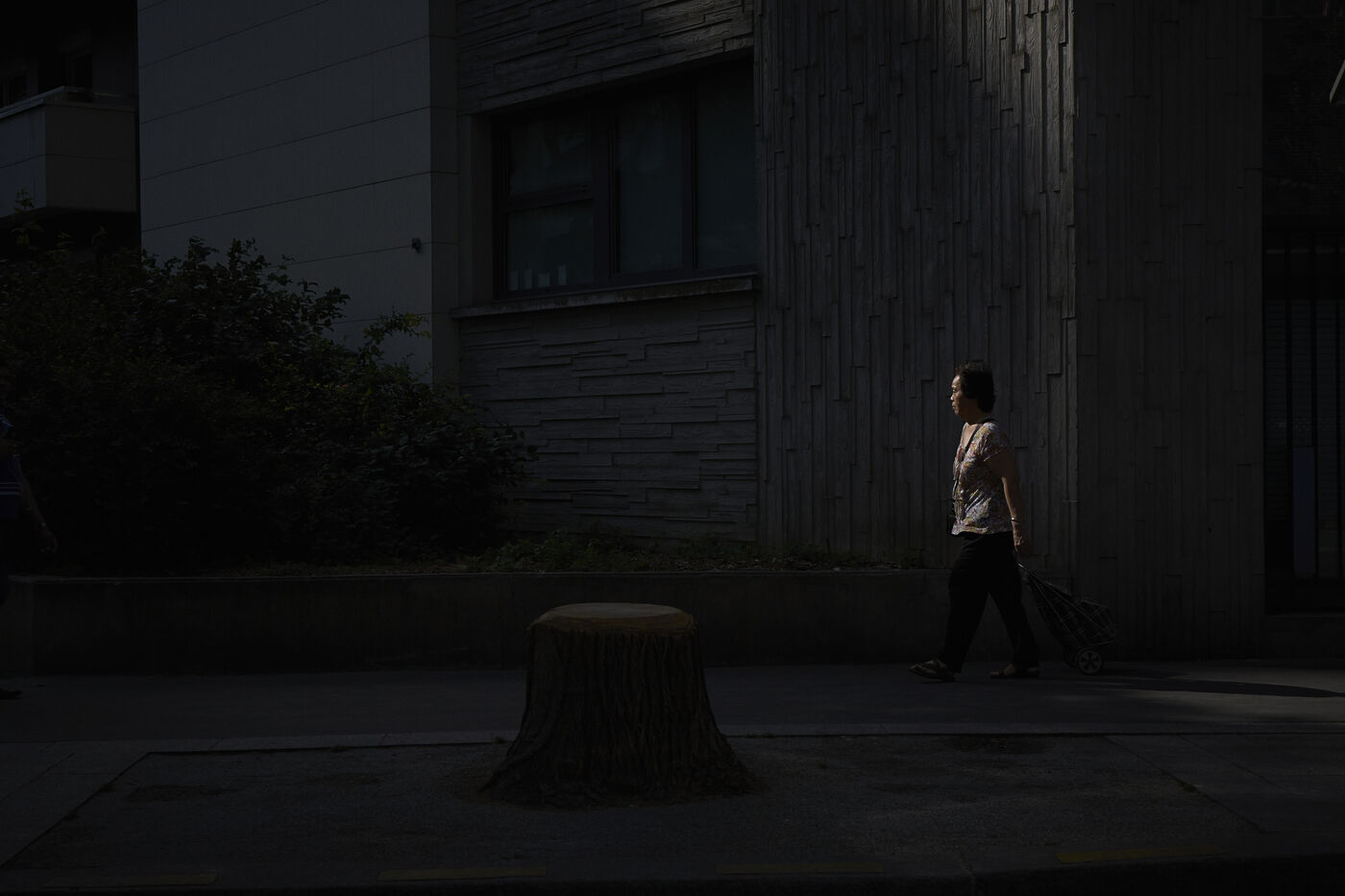 In the spring morning light, everyone is out and about. The pavements are transformed into a shadow theatre. Workers, students and housewives become the anonymous actors.
