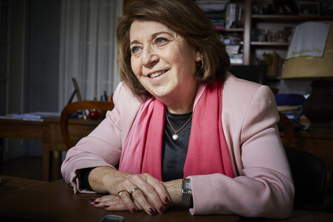 Corrine Lepage, avocate et deputee europeenne ecologiste, est interviewee dans son bureau parisien