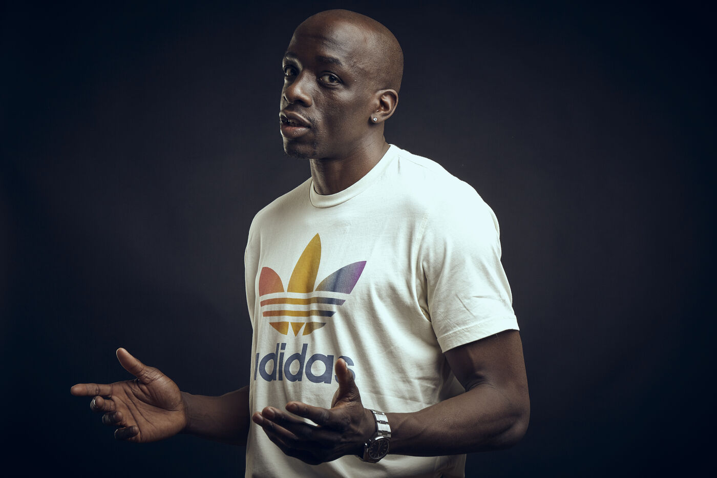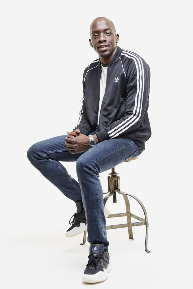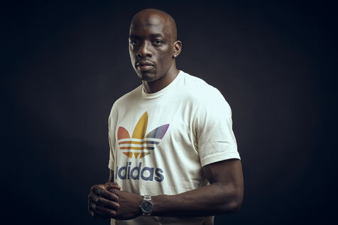 Olivier Nyokas, ailier de l'Equipe de France de Handball, pose pour une se?rie de portrait en studio.