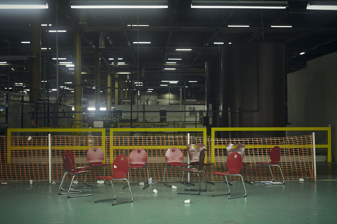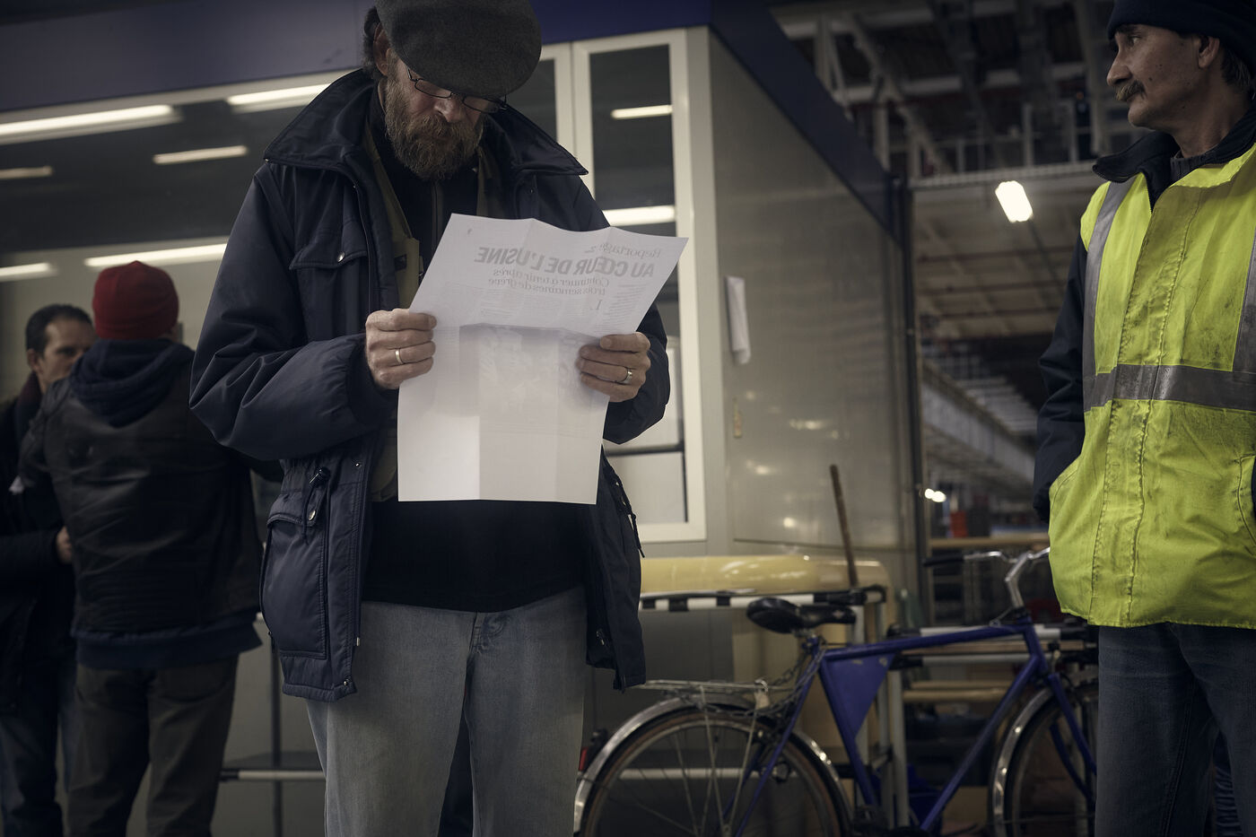Stopped production lines and unemployed workers are a given (even if this is less documented than the tensions that punctuate a strike). The deserted space, the emptiness that fills the building and the days, the idleness and boredom that lurk around and that we try to deceive, are rarely portrayed.