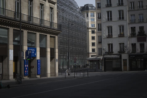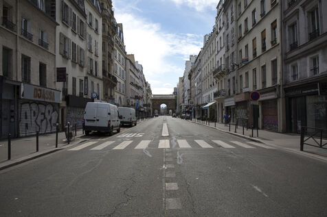 Giving a view. To show the streets of Paris as we never see them. And as very few people have ever seen them, since most of us were locked away in our apartments and neighborhoods. Empty streets, or almost. Images that seem to come out of a science-fiction story, echoing those of megacities the world over, constituting a kind of external shared memory of an event experienced by all. A memory in which everyone can fill in the same gaps, those of sensitive experience of our seemingly emptied cities.