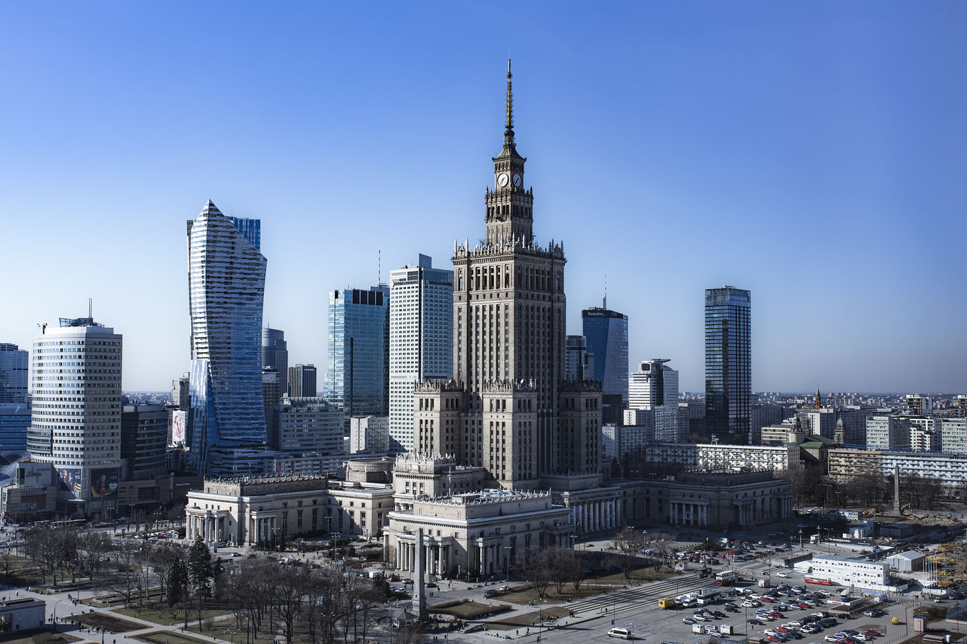 In support of Ukraine, the Palace of Culture and Science lights up at night in the colors of the Ukrainian flag. A symbol all the more powerful, as this tower of Soviet art-deco architecture (42 floors - 237 meters high), ordered by Stalin, and offered to Poland between 1953 and 1955, is one of the "7 Stalinist sisters" that can be found in Moscow and the twin of the current Russian ministry of foreign Affairs (27 floors, 172 meters high).