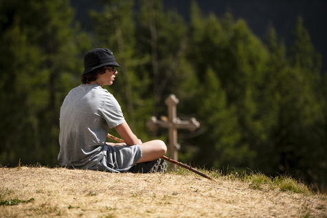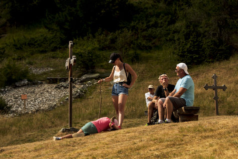 Faced with the landscape and under the sign of the cross, the young people briefly let go of their