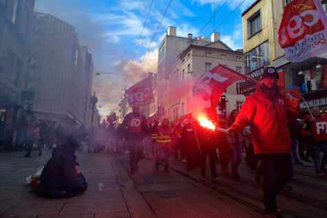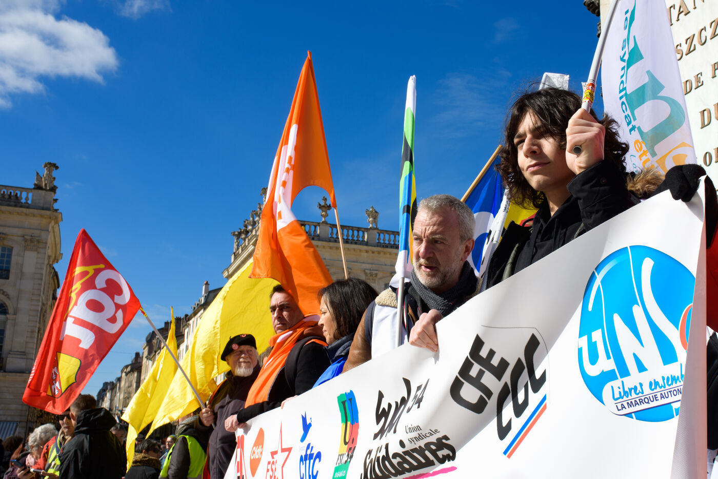 Environ 2000 manifestants selon la police et de 3500 à 6000 selon les syndicats se sont rassemblés à Nancy pour la 7eme journée de mobilisation contre la reforme des retraites à l'appel de l'intersyndicale.
