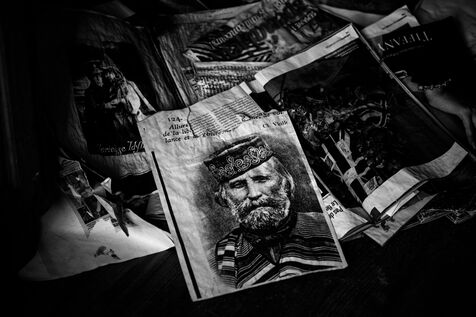 This photo essay, alternating between color (for the present) and black and white (for the past and the timeless), offers an intimate immersion into his universe: portraits, studio details, fragments of artworks, collages, and archives. He no longer wished to recount everything — the war, his father, the sixties, or the fight led by his wife, still his “very dedicated press officer,” against the death penalty. The concerts with Georgie Viennet, Ferré, Ferrat... All of it belonged to their shared past.