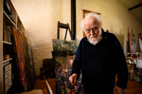At 87, Gérard Larguier opens the doors of his presbytery in Bonnet, in the Meuse region of France. A student of Paul Colin ( the celebrated poster artist and companion of Joséphine Baker) he has lived through a century of artistic movements, ruptures, and myths. He lived and worked in his studio at the Bateau Lavoir in Paris, a place he has only recently left. He once mingled with Jean Cocteau, Jean Marais, César, and the post-war Saint-Germain-des-Prés artistic milieu. His work, comprising thousands of canvases, has been shown worldwide and blends free figuration, lyrical abstraction, textural expressionism, and engaged symbolism.