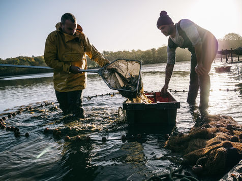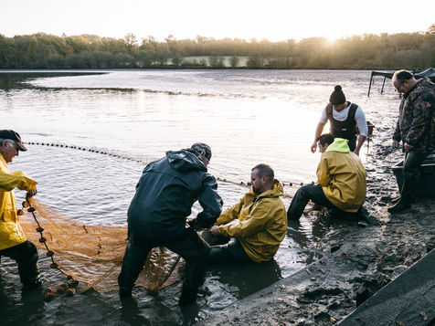 La Sologne, dans le Centre-Val de Loire, territoire d'eau et d'étangs. L'hiver, plus de 500 étangs, sur les 3000 que compte la région, sont vidés et pêchés. Les bottes enfoncées dans la vase, Thomas Doyon, 41 ans, assiège les derniers bancs de poissons qui frétillent à la surface. Pisciculteur de père en fils depuis quatre générations, il perpétue cette tradition remontant aux moines bénédictins du Moyen-Age.
