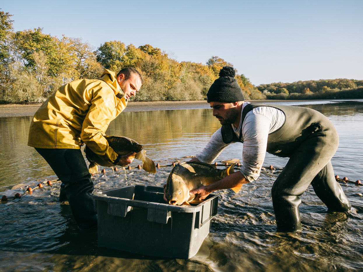 The Sologne, in the Centre-Val de Loire, is a land of water and ponds. In winter, more than 500 of the region's 3000 ponds are emptied and fished. With his boots stuck in the mud, Thomas Doyon, 41, besieges the last shoals of fish wriggling on the surface. A fish farmer from father to son for four generations, he perpetuates this tradition dating back to the Benedictine monks of the Middle Ages.