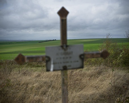 Pendant une quinzaine de jours, je suis parti en voiture à la recherche de cette ligne de front et de ses traces 100 ans après. Paysages vides, reconquis par l'homme et la nature, mémoriaux, touristes, la vie y est plus présente que l'idée que je m'en faisais. Parti de Nieuport en Belgique, là où les alliés et les belges ont inondé la plaine de l'Yser pour stopper l'avancée de l'Allemagne, jusqu'au discret Kilomètre Zéro aux frontières de la Suisse, de la France et de l'Allemagne, c'est une série sur la lumière et l'atmosphère à la recherche des bruits de la « der des der ».
