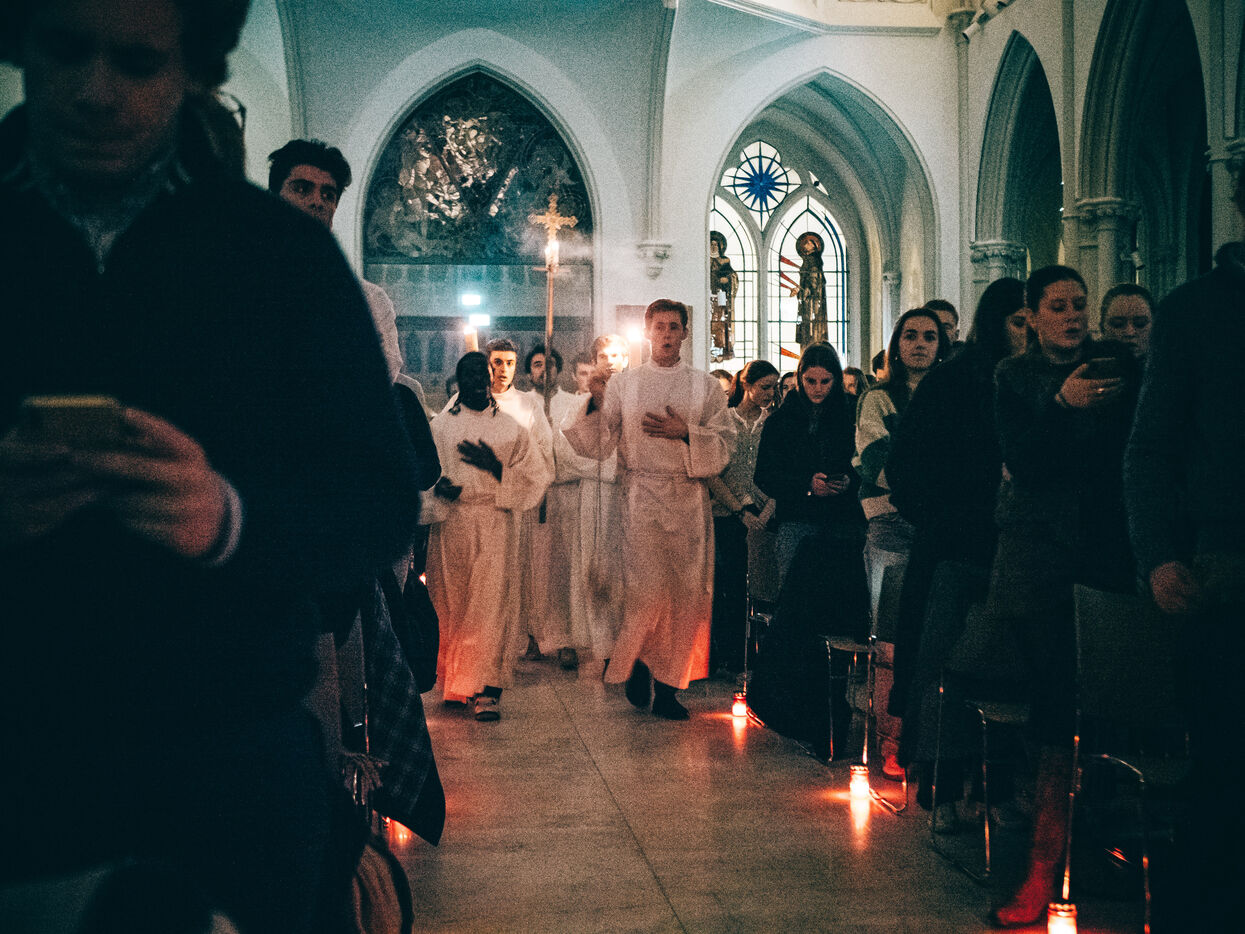 Messe à la bougie au sein de l'université catholique de Lille.