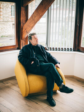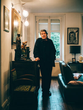 Portrait de l'écrivain Franz Bartelt chez lui, dans les Ardennes.