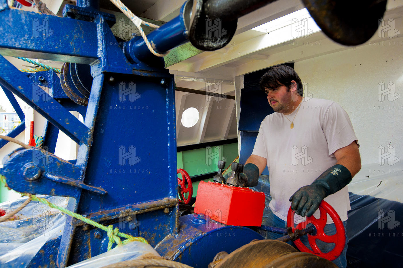 Morgan the commander of the boat takes us for 24 hours fishing scallops in the bay of Le Havre,