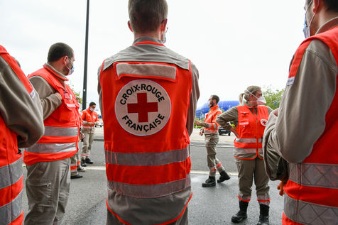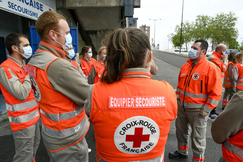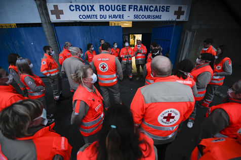 Tribute to the carers of the Jacques Monod hospital in Le Havre by the red cross