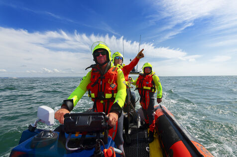 La SNSM d'Yport en Seine Maritime, effectue des exercices de sauvetages devant la baie d'Yport