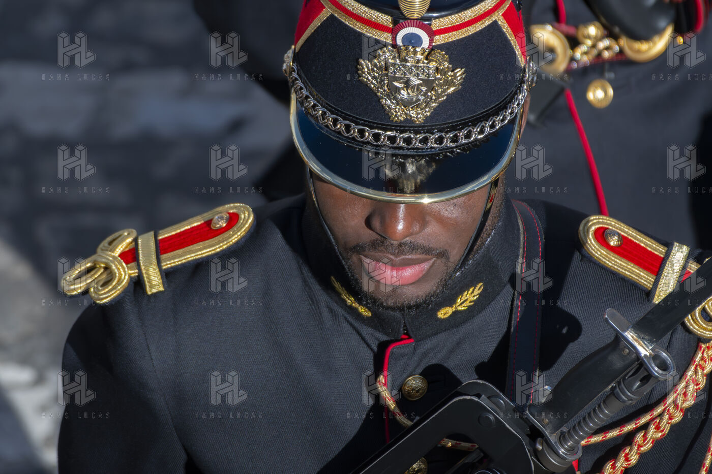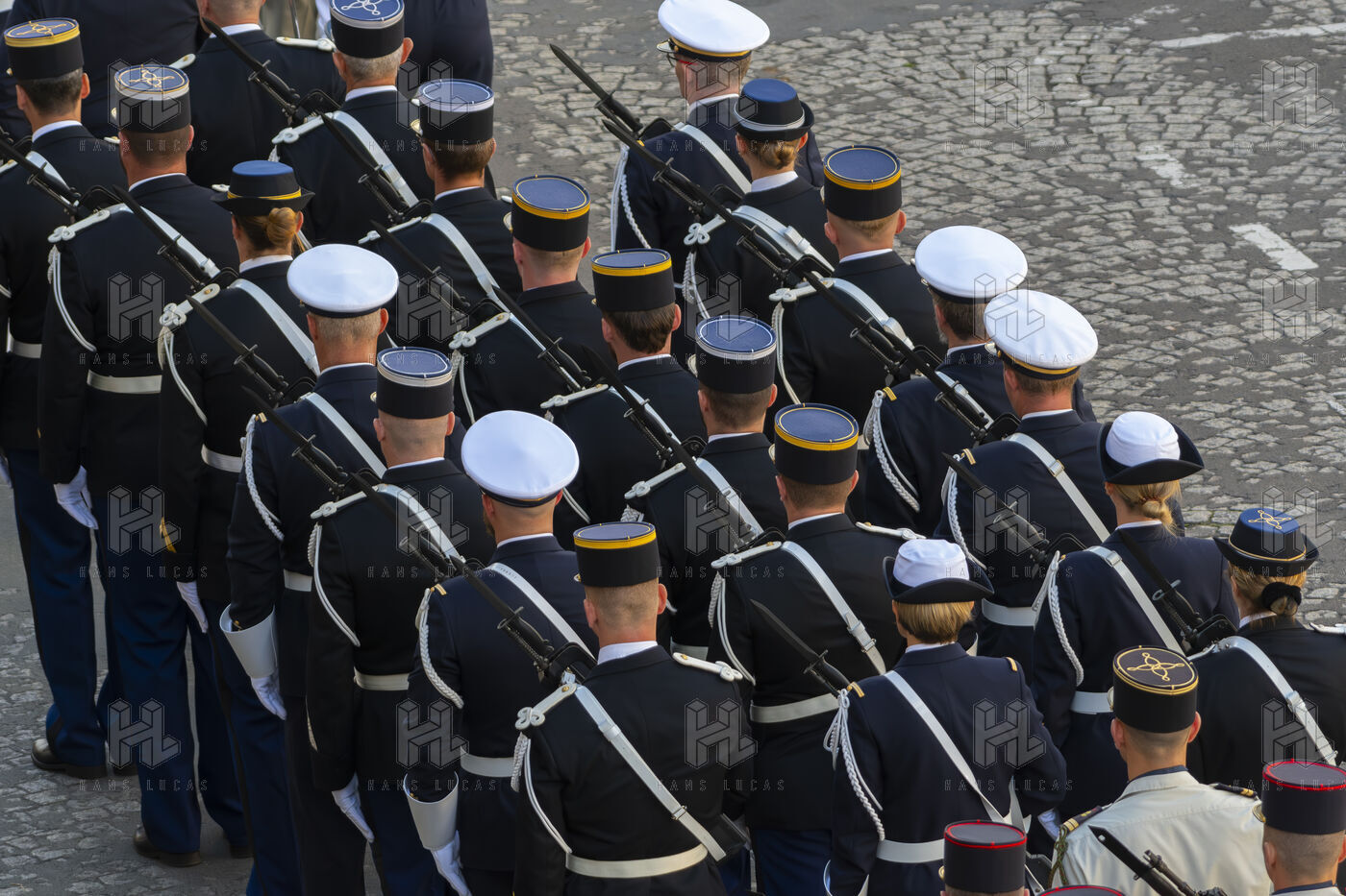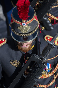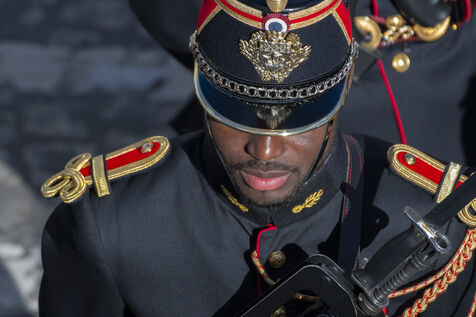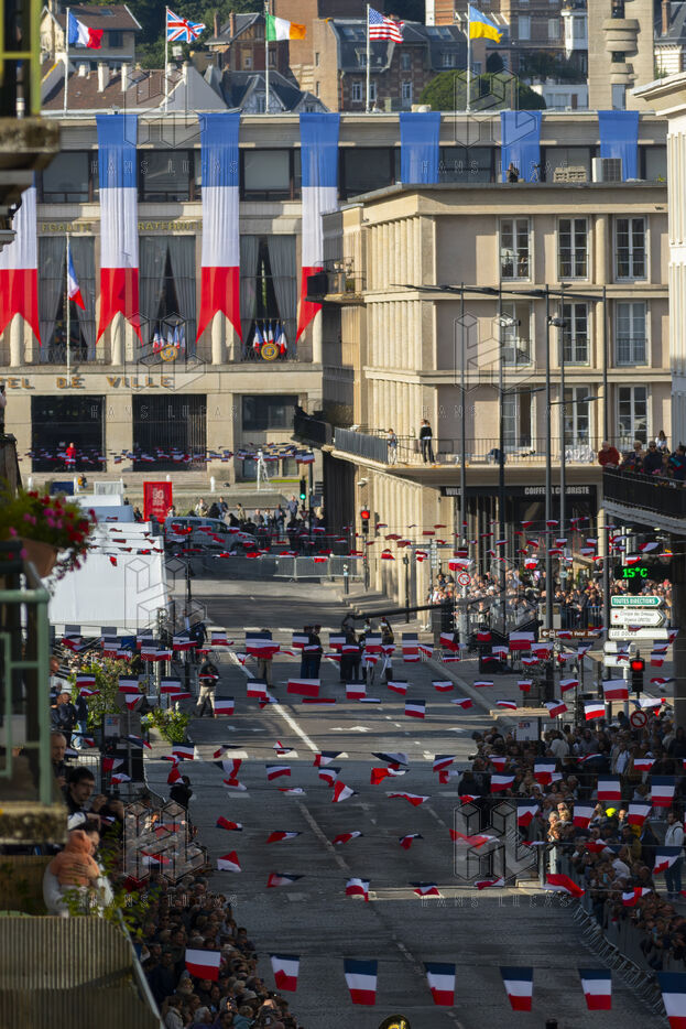 80 years of the liberation of Le Havre, a gathering on rue de Paris in Le Havre with several army corps, soldiers as well as the crowd and the mayor of Le Havre, former prime minister Edouard Philippe.