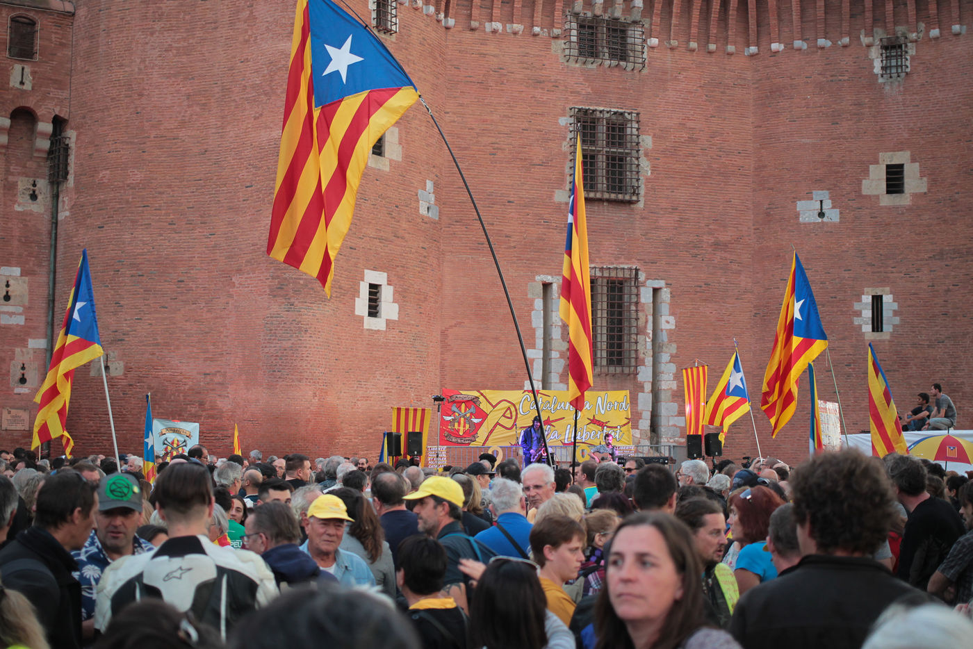 En réponse aux condamnations des représentants Catalans du 14 octobre 2019, un rassemblement a eu lieu Place de la Victoire à Perpignan face au Castillet en soutien aux indépendantistes.