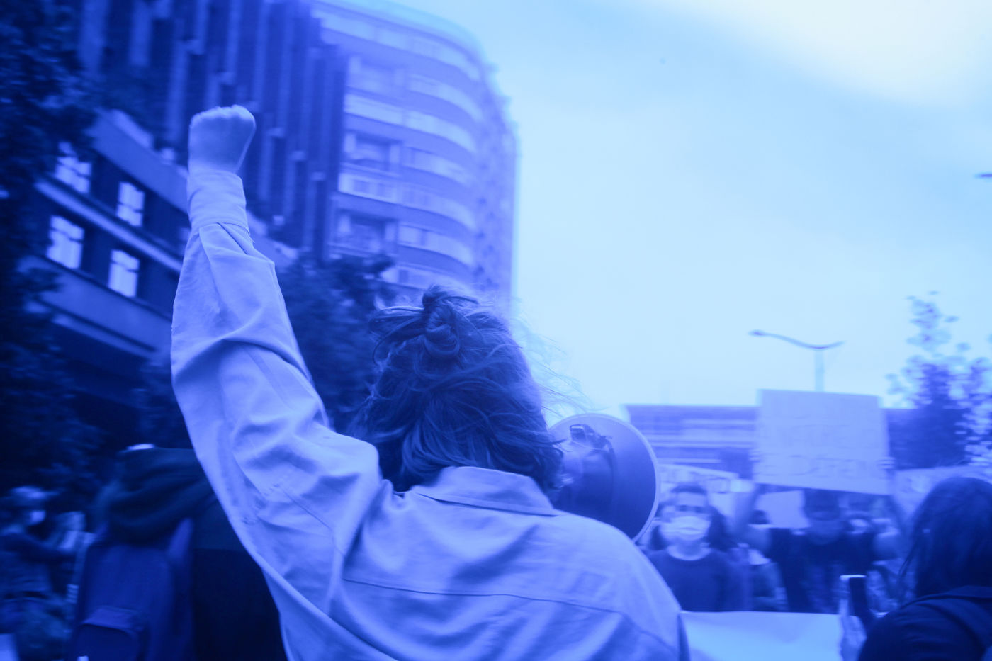 La manifestation répond au vote qui s'est déroulé mardi 4 mai à l'Assemblée Nationale de la loi "Climat et résilience" . Beaucoup de jeunes personnes constituaient l'essentiel du cortège avec bandas, batucada et performance artistique du collectif Aux Arts Etc. dans une ambiance festive mais aussi revendicative dont un slogan accompagné de mouvements des participants a été scandé "Un pas en avant, deux pas en arrière"!