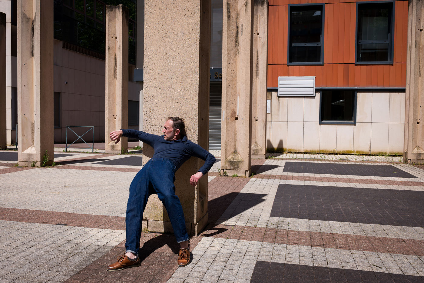 The struggle is not only social, it is also human, psychological. There are those which are visible and expressed sometimes repressed and then those which are killed by modesty, guilt, humility or fatalism. Street furniture is cold, sealed to the ground, rigid, imposed. He is thwarted by this body in movement and color which is inscribed in asymmetry of him, contortions, sets in motion to counter him, to push him back. The body becomes contested in the face of this element which remains soulless fixed on its achievements and victories, which increasingly restrict the other. An artistic collaboration has been implemented with Rodolphe Viaud choreographer and dancer from Toulouse for the realization of this subject.