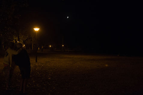 La période d'août est généralement celle où les touristes affluent dans Les Landes mais à cette heure du soir: les bateaux sont sans les voiles, le silence règne autour du lac malgré la présence de quelques promeneurs. Le calme, que j'y constate, encourage à la déambulation nocturne où seul l'éclairage indirect confère ces clairs-obscurs très picturaux aux objets, au lieu.