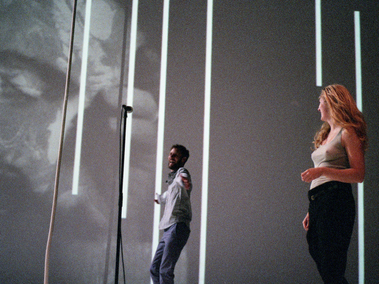 GdRA created and led by Christophe Rulhes and Julen Cassier. Tryptic of the person created in 2014. Conception, text, direction, music: Christophe Rulhes. Scenography: Julien Cassier and Christophe Rulhes. Artistic and theatrical creation finalized at the Théâtre Garonne.