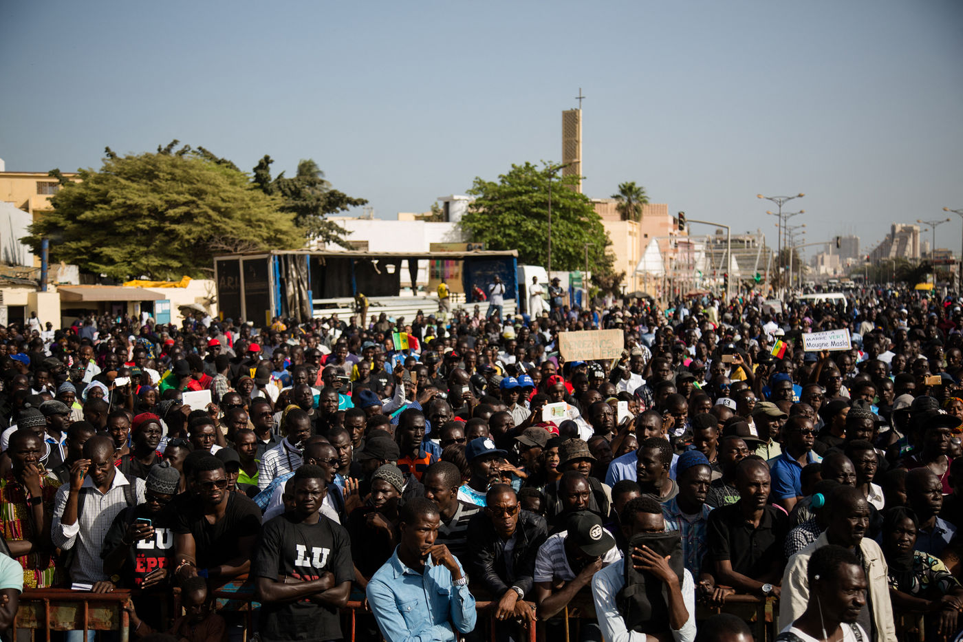 Rassemblement à Dakar le 7 avril 2017. Le mouvement Y'en a Marre appelait les sénégalais à se rassembler pacifiquement pour dénoncer le manque de démocratie et de justice au Sénégal selon ses membres.