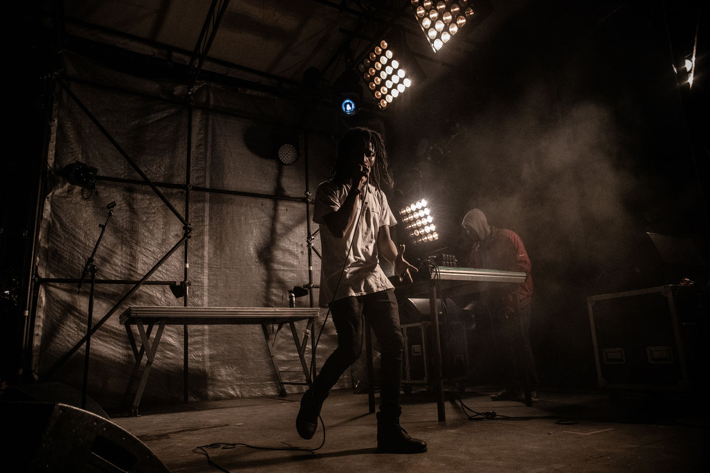 Duma, grindcore duo founded by singer Martin Khanja, aka Lord Spike Heart, and producer Sam Karugu, performing in Paris at La Station Gare des Mines.