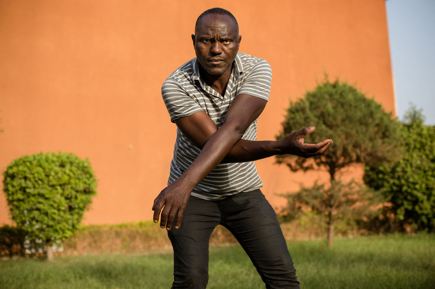 Salia Sanou, chorégraphe, posant au CDC (Centre de Développement Chorégraphique) La Termitière dont il est l'un des fondateur.