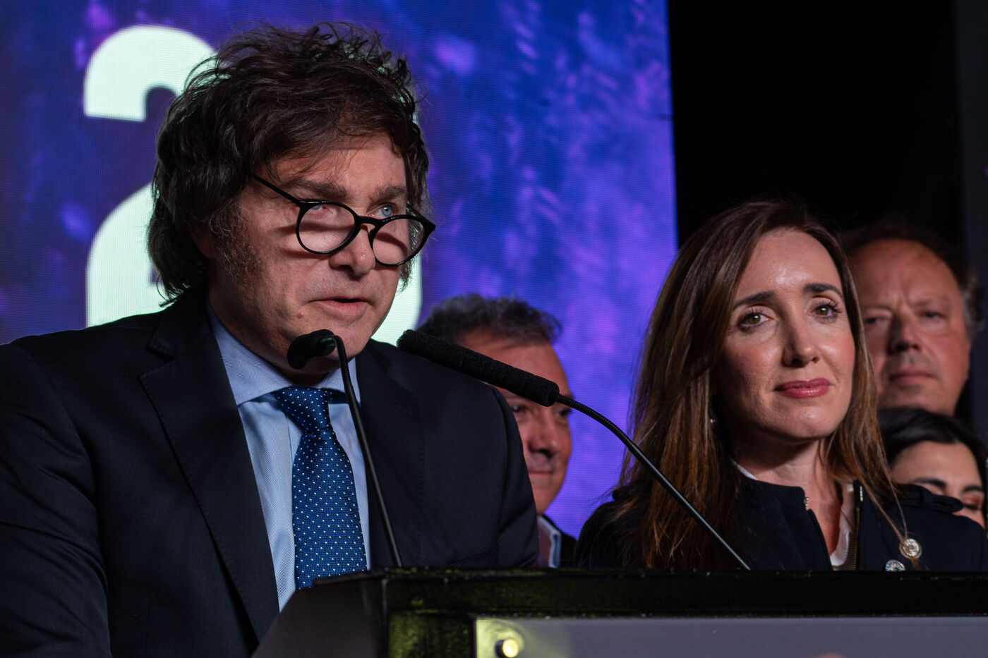Javier Milei, candidates and supporters of La Libertad Avanza received the election results in their bunker at the Libertador Hotel.