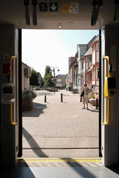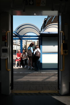 Découverte de ce tram, en juillet 2023, à travers les portes de ce dernier, où les paysages s'enchainent et les passagers vont et viennent aux grés de leurs envies.