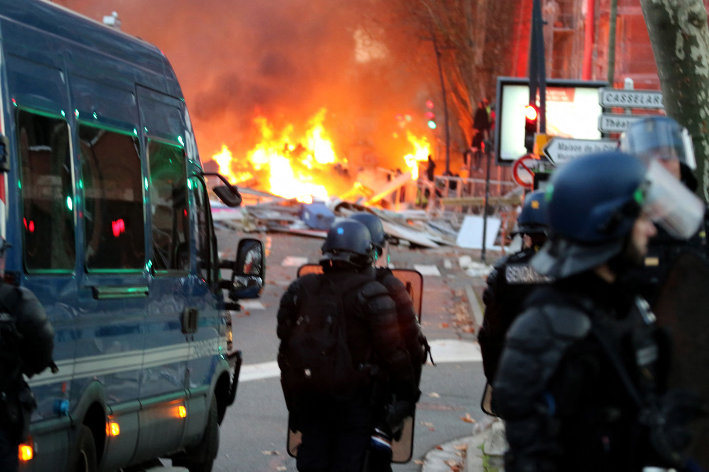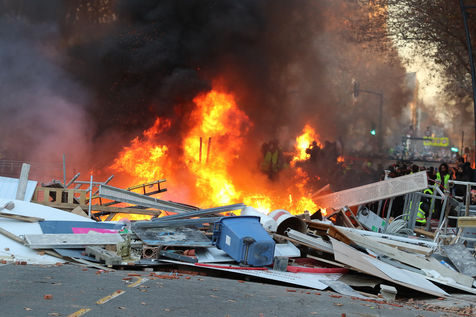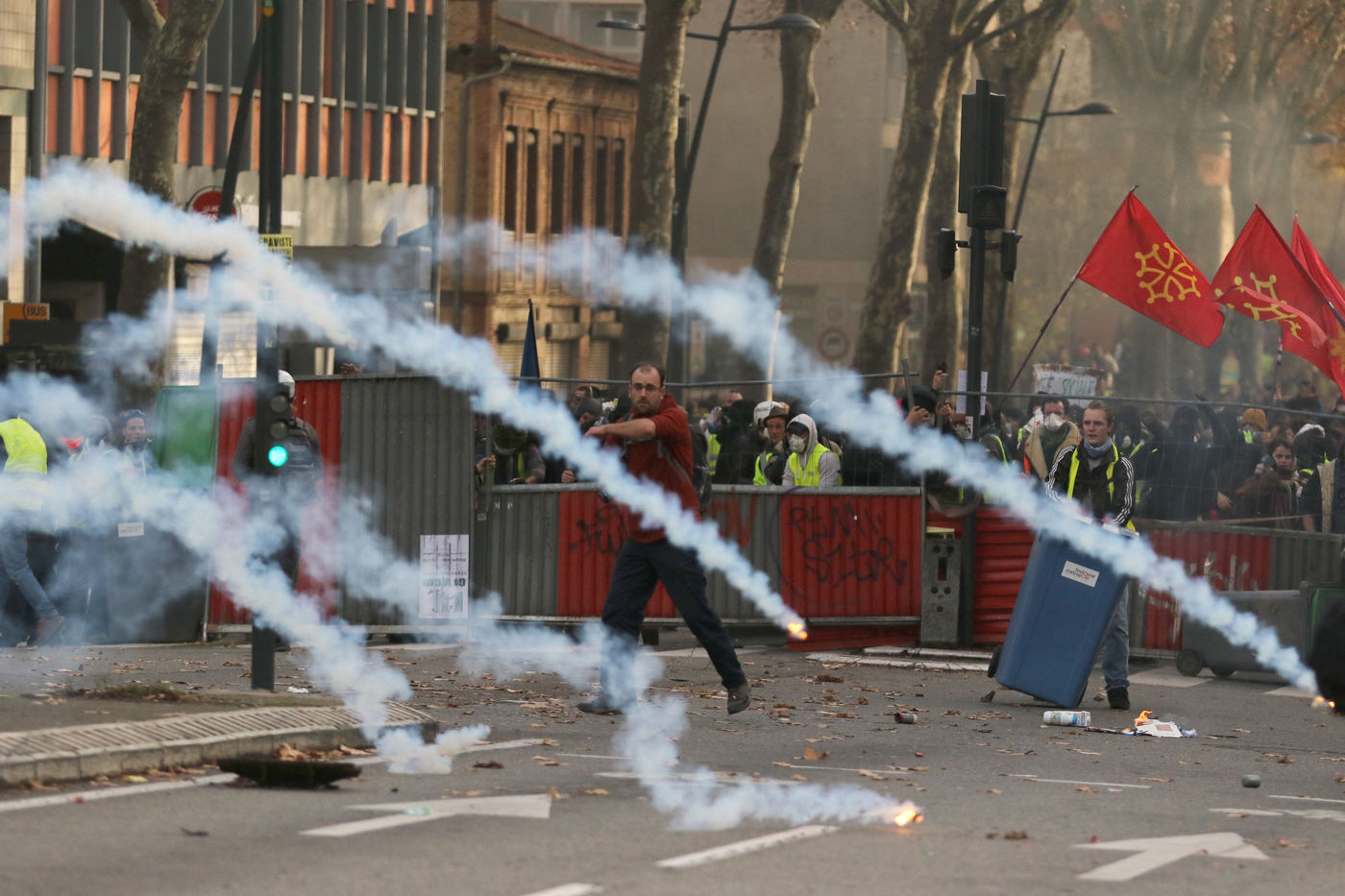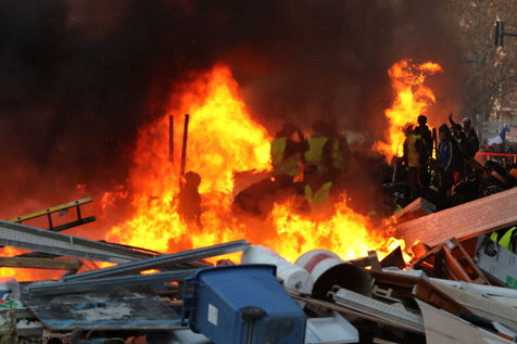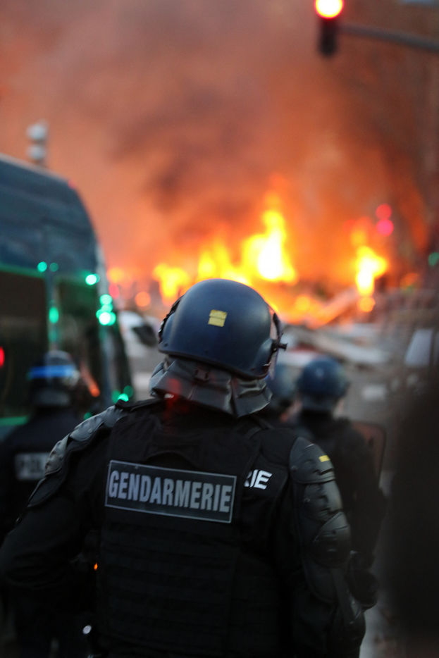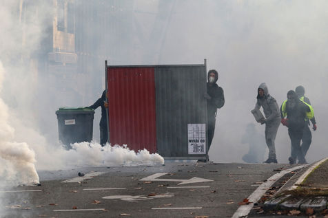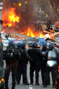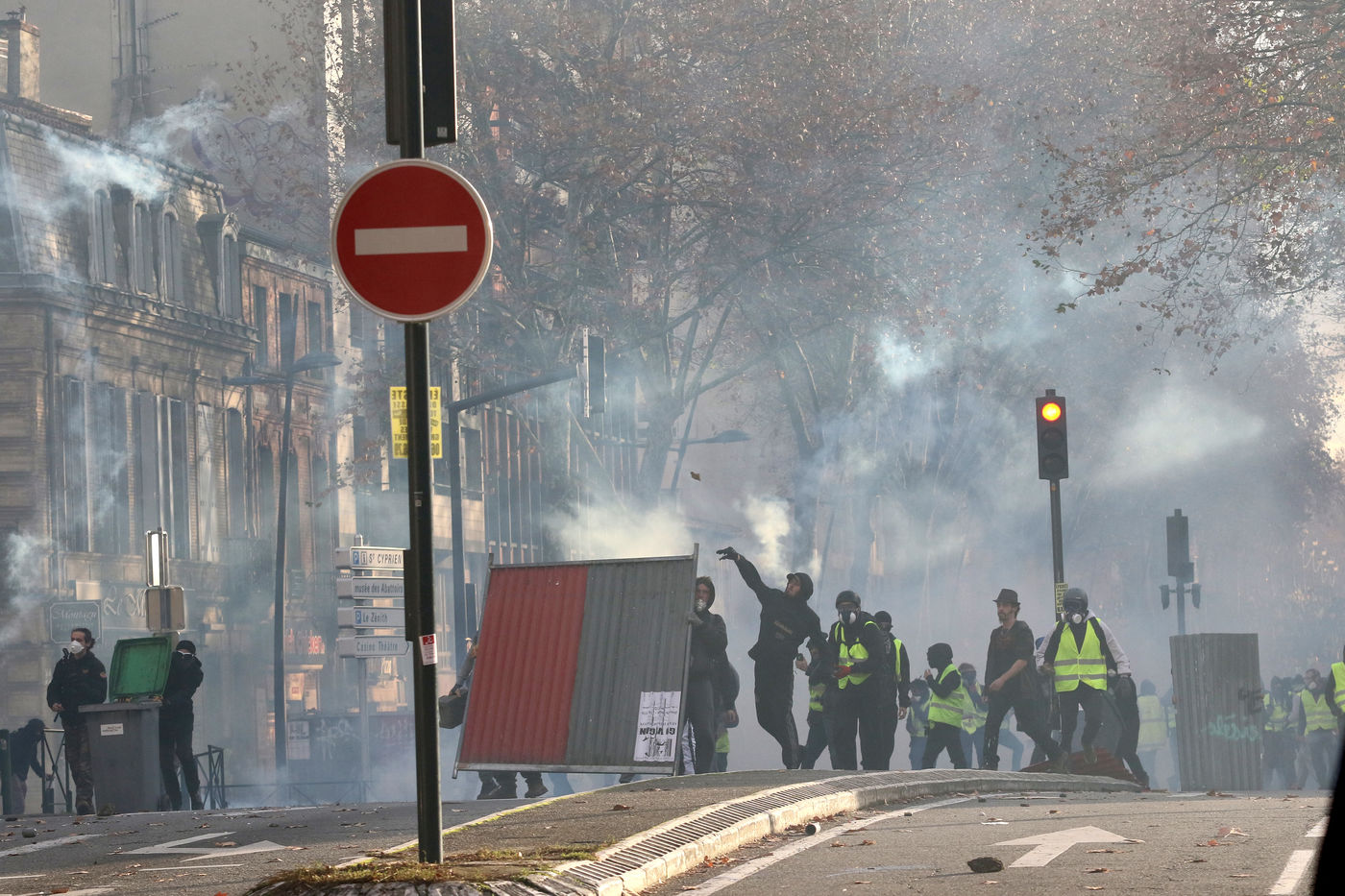 Clashes between the police and a group of yellow vests that came to grips with the demonstration during the climate march movement of "yellow vests", a movement of protest by French citizens that appeared on social networks against the increase in fuel taxes, tax increases and against the government and the Macron president. Toulouse, France - December 8, 2018.