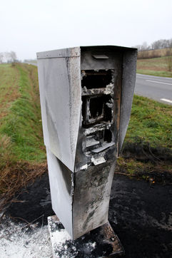 Un radar automatique de contrôle de vitesse entièrement détruit par un incendie crimminel au bord de la route departementale RD 929.