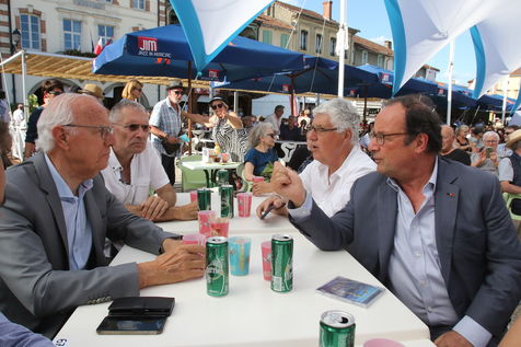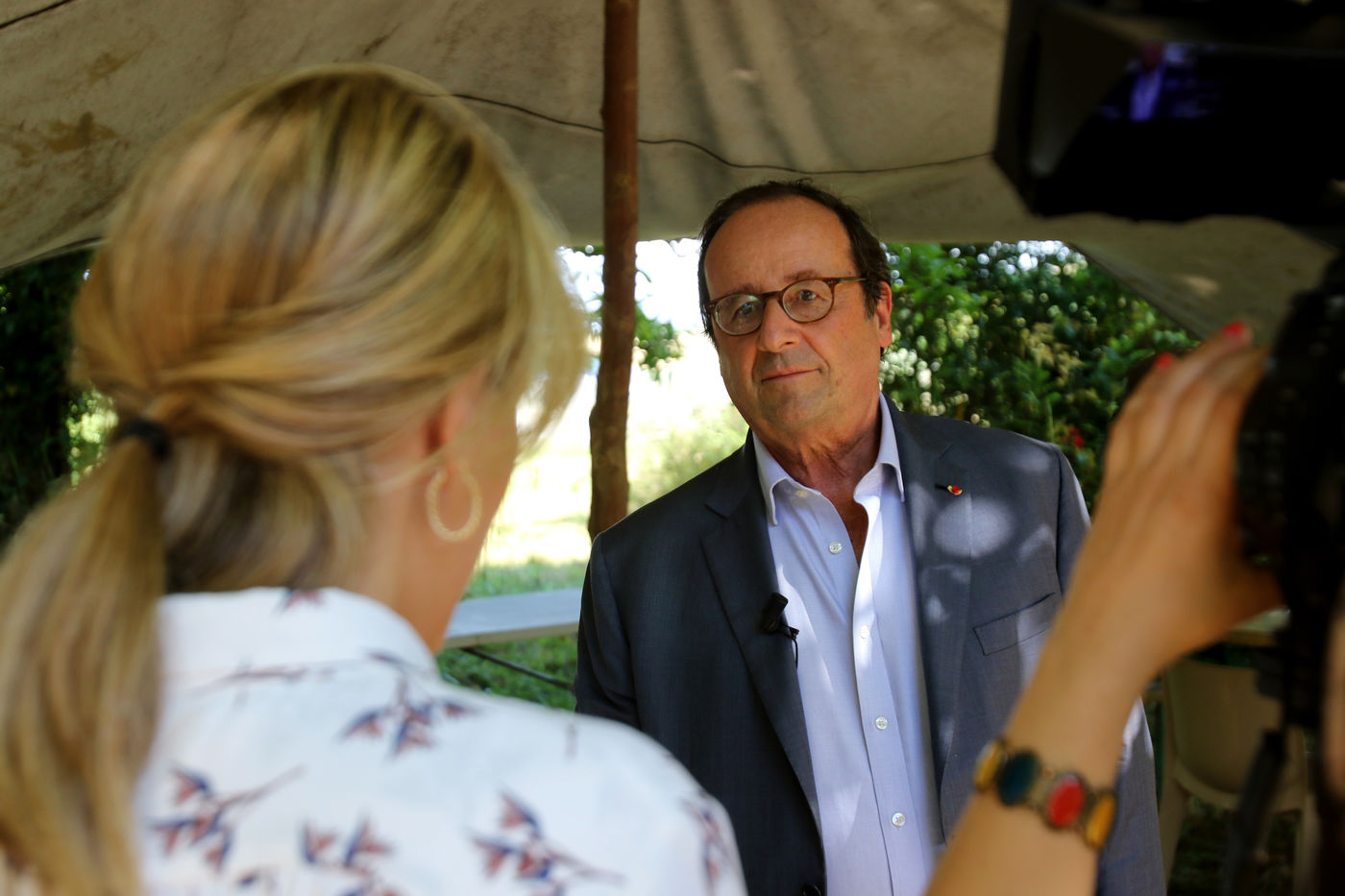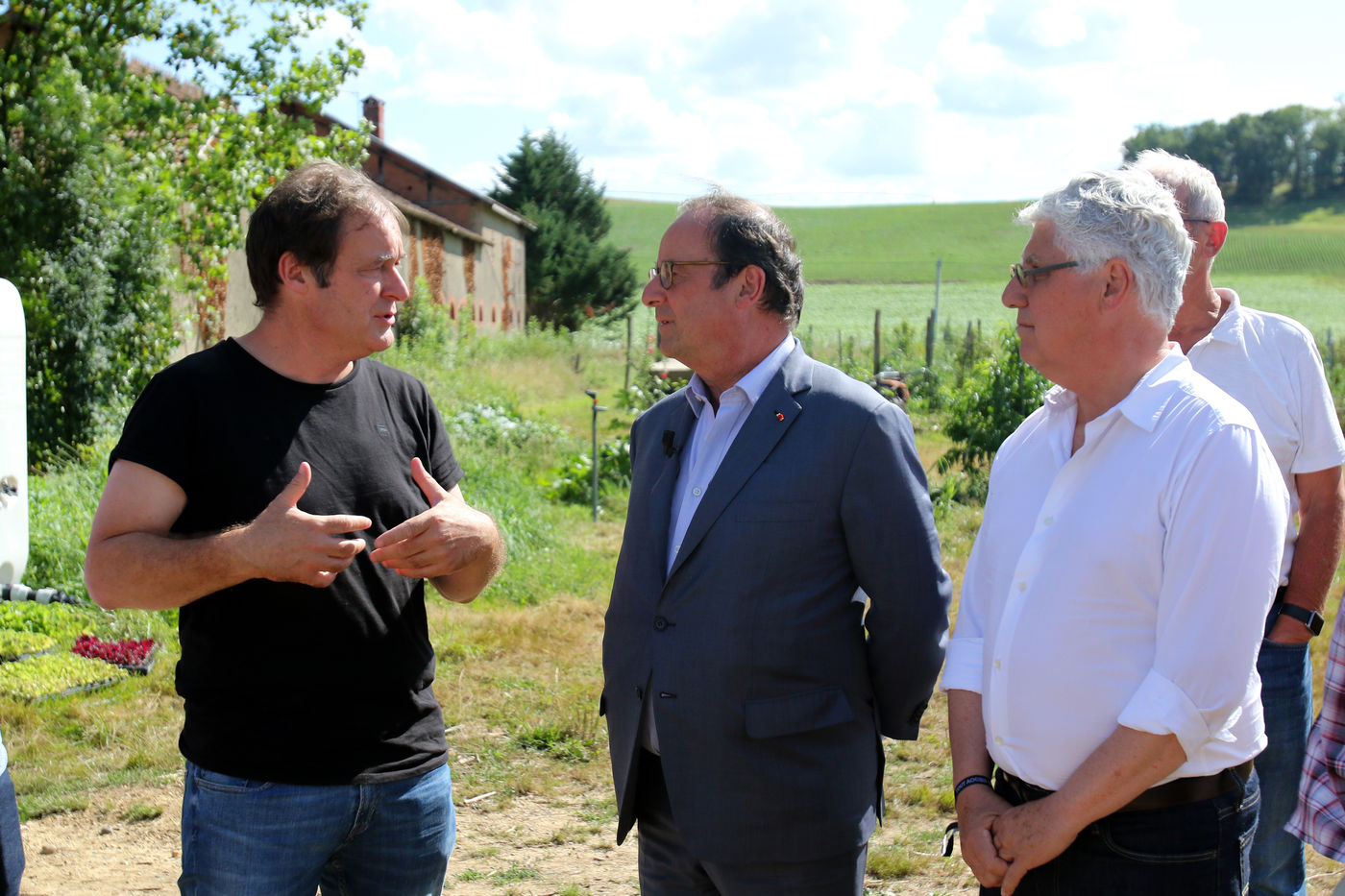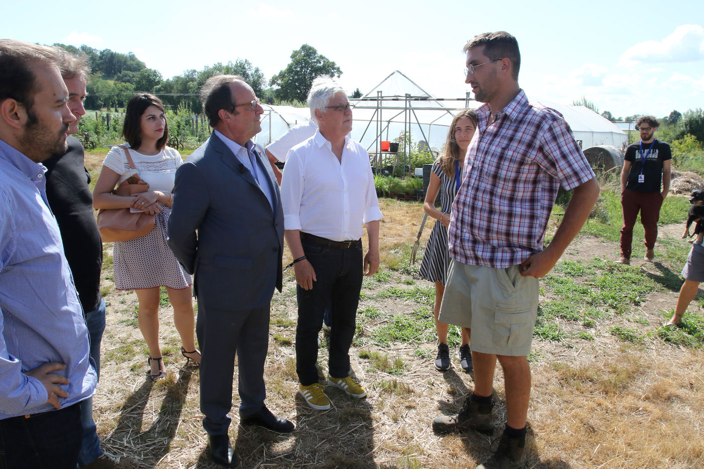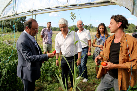Francois Hollande visite une exploitation agricole biologique Marciac, France - 28 Juillet 2019.