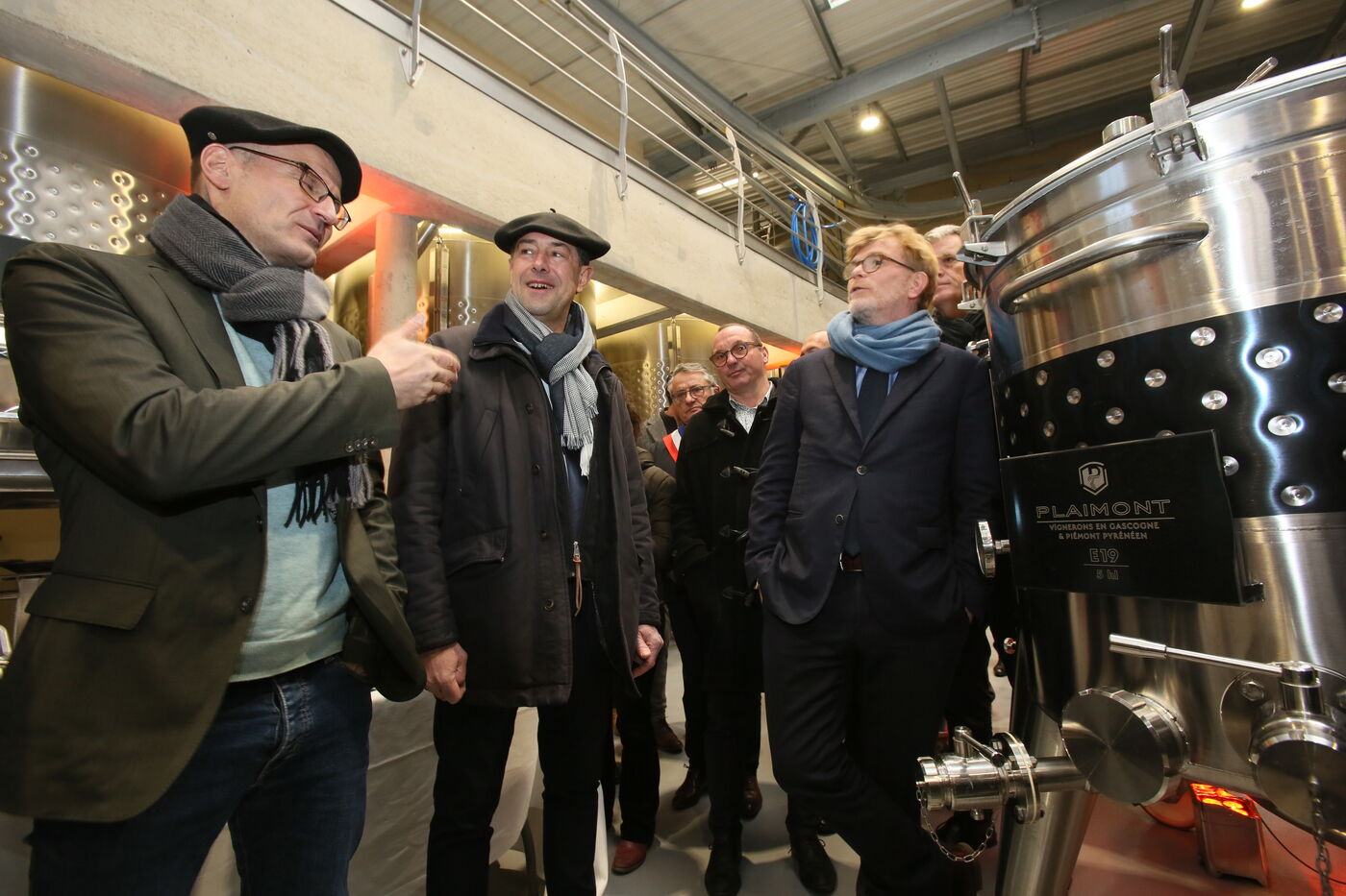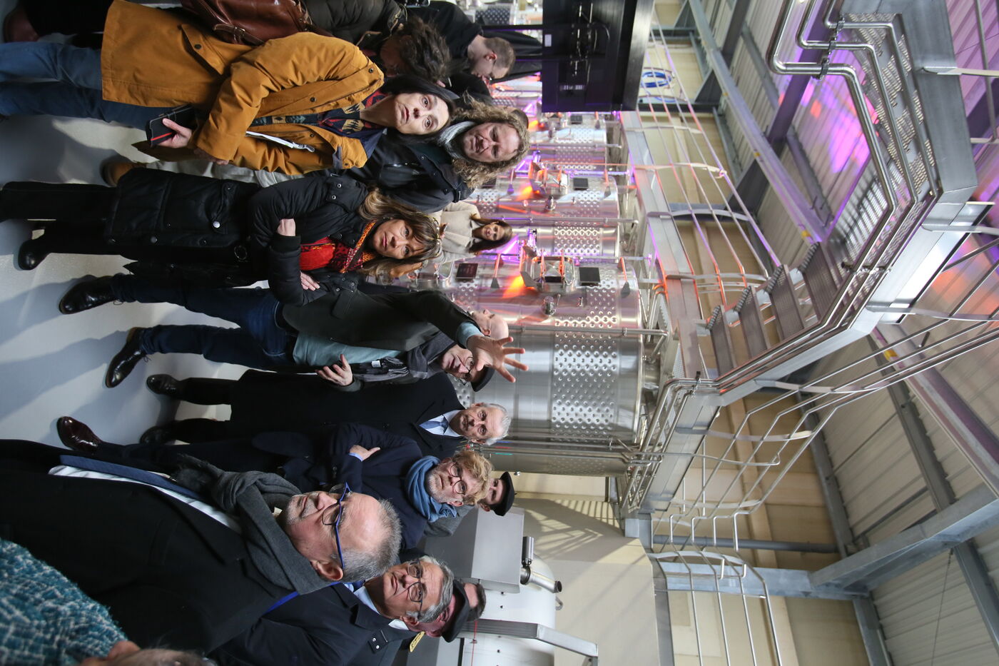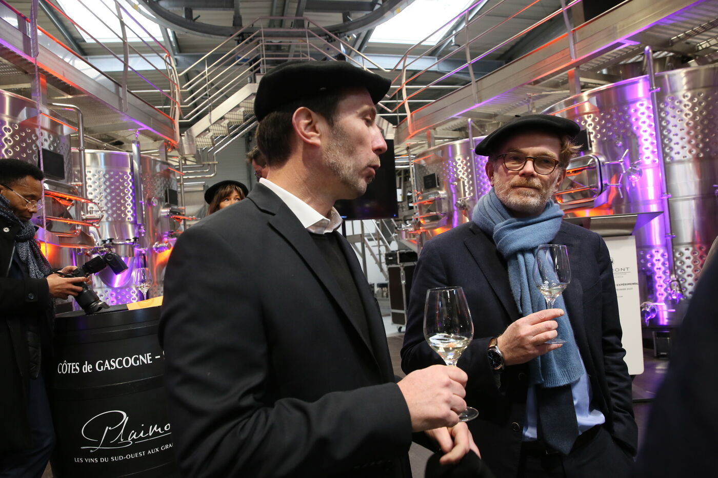 Saint Mont, France, 2023-02-10. Experimental winery of the Plaimont producers during the inauguration of the new winery, which will allow research and adaptation of old vines to face climate change, was built by the wine cooperative of Plaimont producers in Saint Mont.