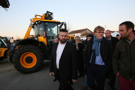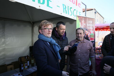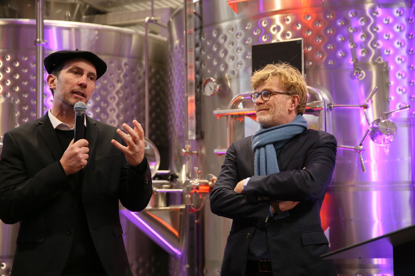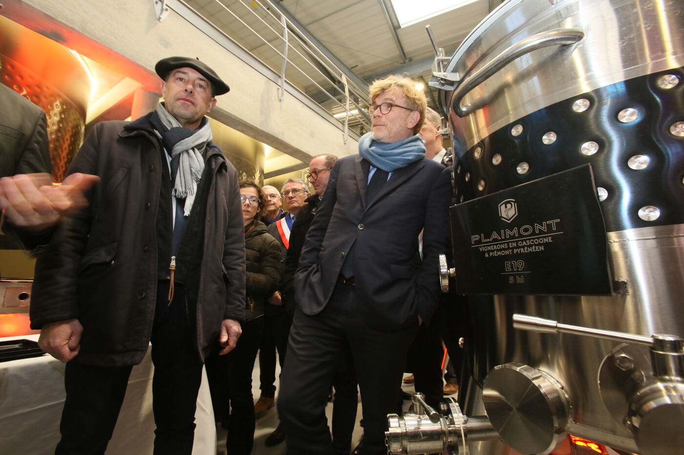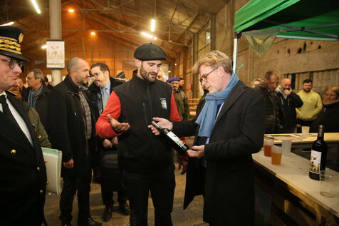 Saint Mont, France, 2023-02-10. Experimental winery of the Plaimont producers during the inauguration of the new winery, which will allow research and adaptation of old vines to face climate change, was built by the wine cooperative of Plaimont producers in Saint Mont.