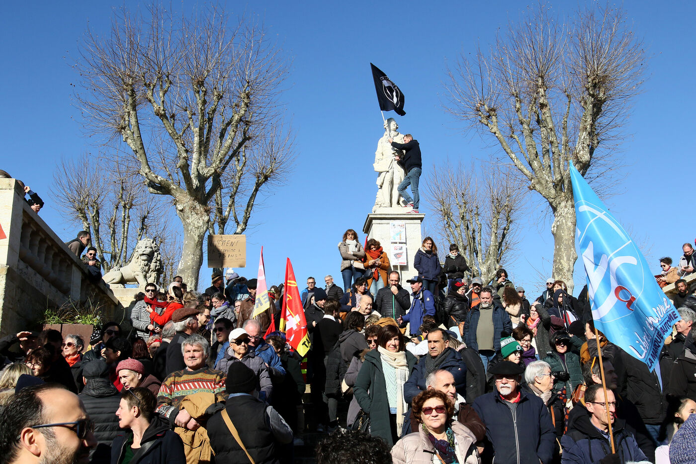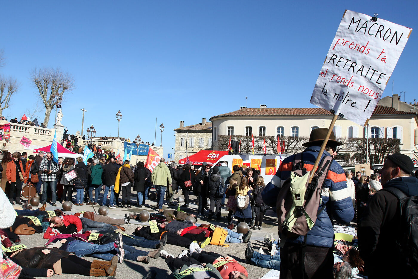 Demonstration against the reform of the pensions to the call of the unions the reform carried by the Borne government wishes to push back the legal age of the retirement to 64 years, strong mobilization in Auch small city which since the beginning of the gatherings of opposition.