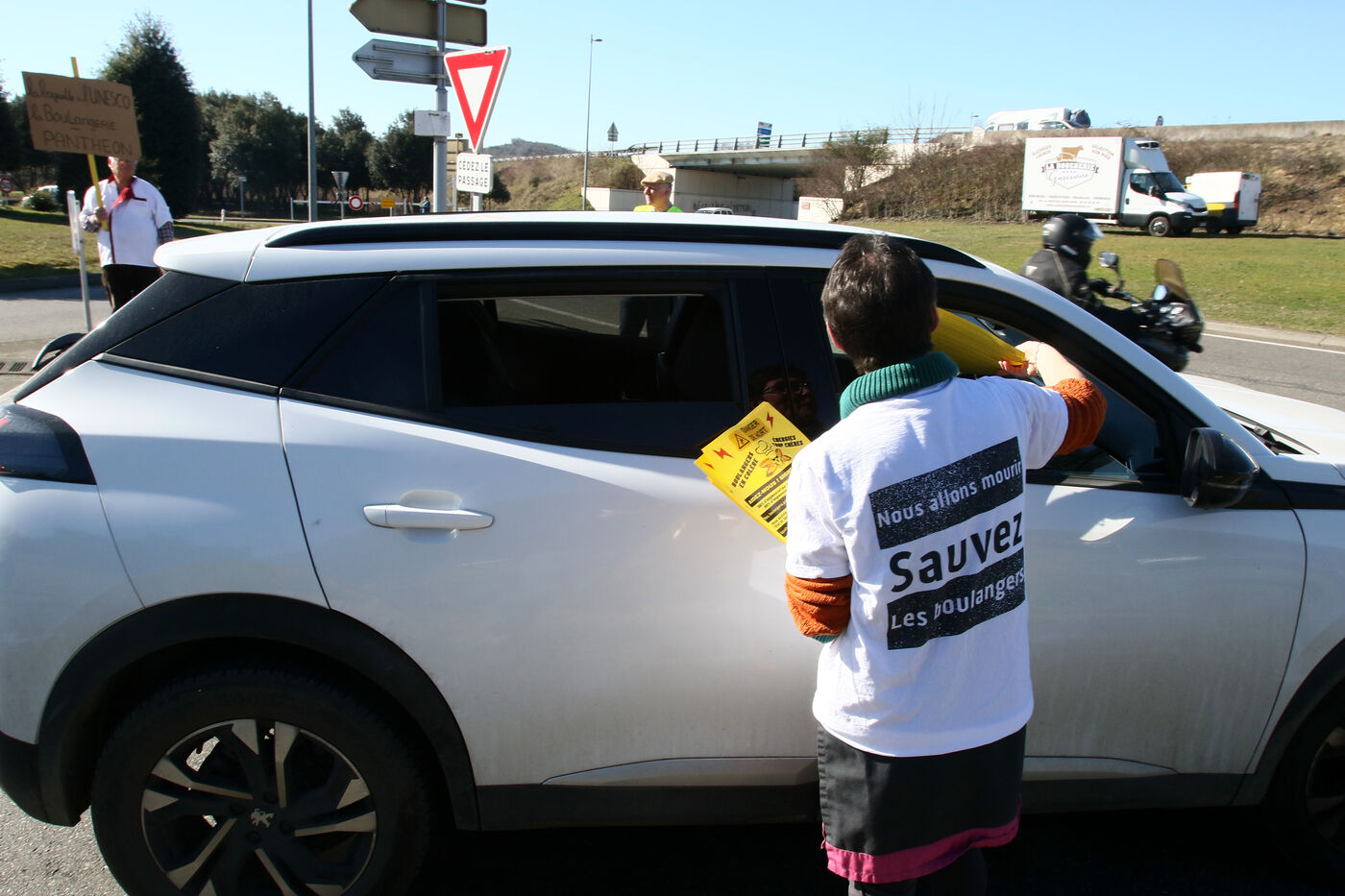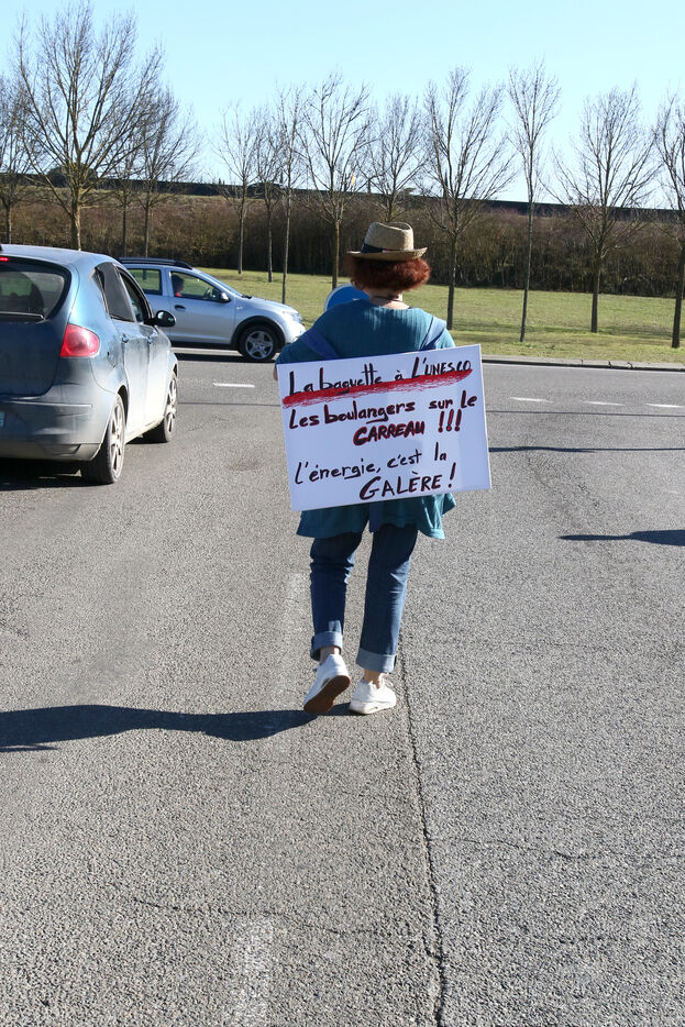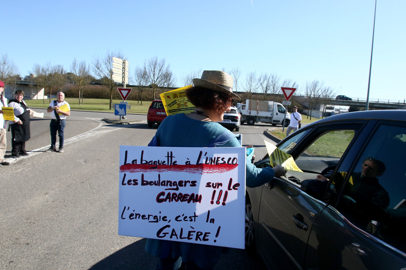 A baker during an operation of distribution of leaflets to motorists at a roundabout of Auch in order to inform them of the increase of their charges due to the inflation on the raw materials and especially of the prices of energy with bills of electricity and gas putting in peril their artisanal businesses.