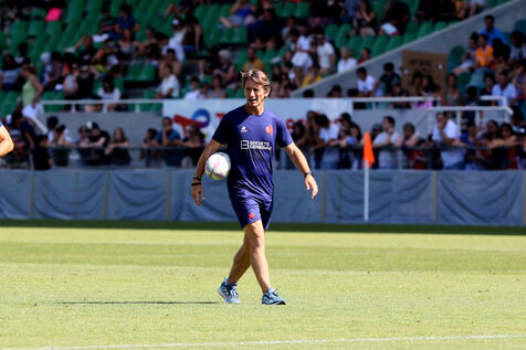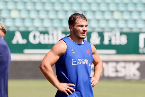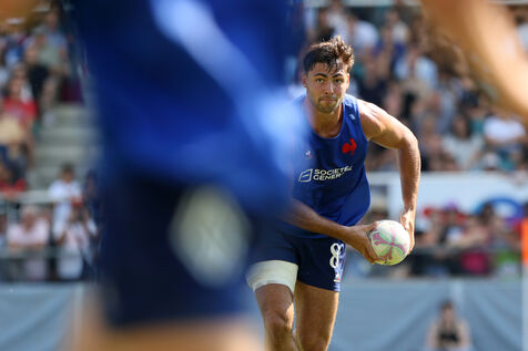 Pau, France, 2024-07-11. French sevens rugby player during a training session at the Stade du Hameau in Pau during the preparation camp before the Paris 2024 Olympic Games .Photograph by Sebastien Lapeyrere.