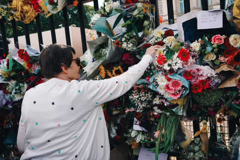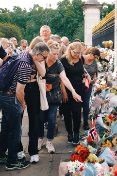 On 8 September 2022, Elizabeth II passed away. During the weekend, Londoners pay tribute to her in St James's Park and Buckingham Palace. Flowers, words and gifts are left on the gates.