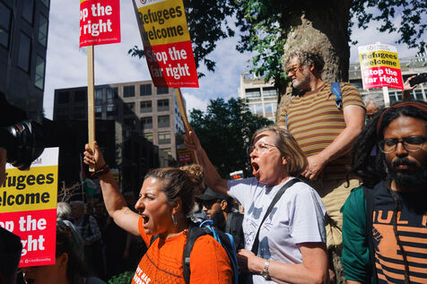 En réponse aux émeutes anti-immigration qui se sont déroulées à travers le Royaume-Uni, des manifestants antiracistes se sont rassemblés devant le siège de Reform UK à Londres. Organisé par Stand Up To Racism, le rassemblement a eu lieu après une série de manifestations racistes provoquées par de fausses rumeurs liant le meurtre de trois enfants à Southport, en Angleterre, à un demandeur d'asile.