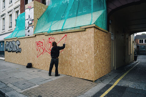 À l'approche du Carnaval de Notting Hill, les habitants et commerçants se barricadent pour protéger leurs propriétés. Panneaux de bois et carton couvrent vitrines et fenêtres, offrant aussi une toile vierge aux street artists.