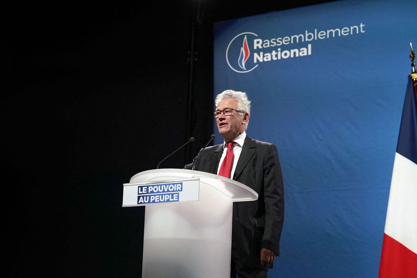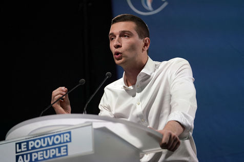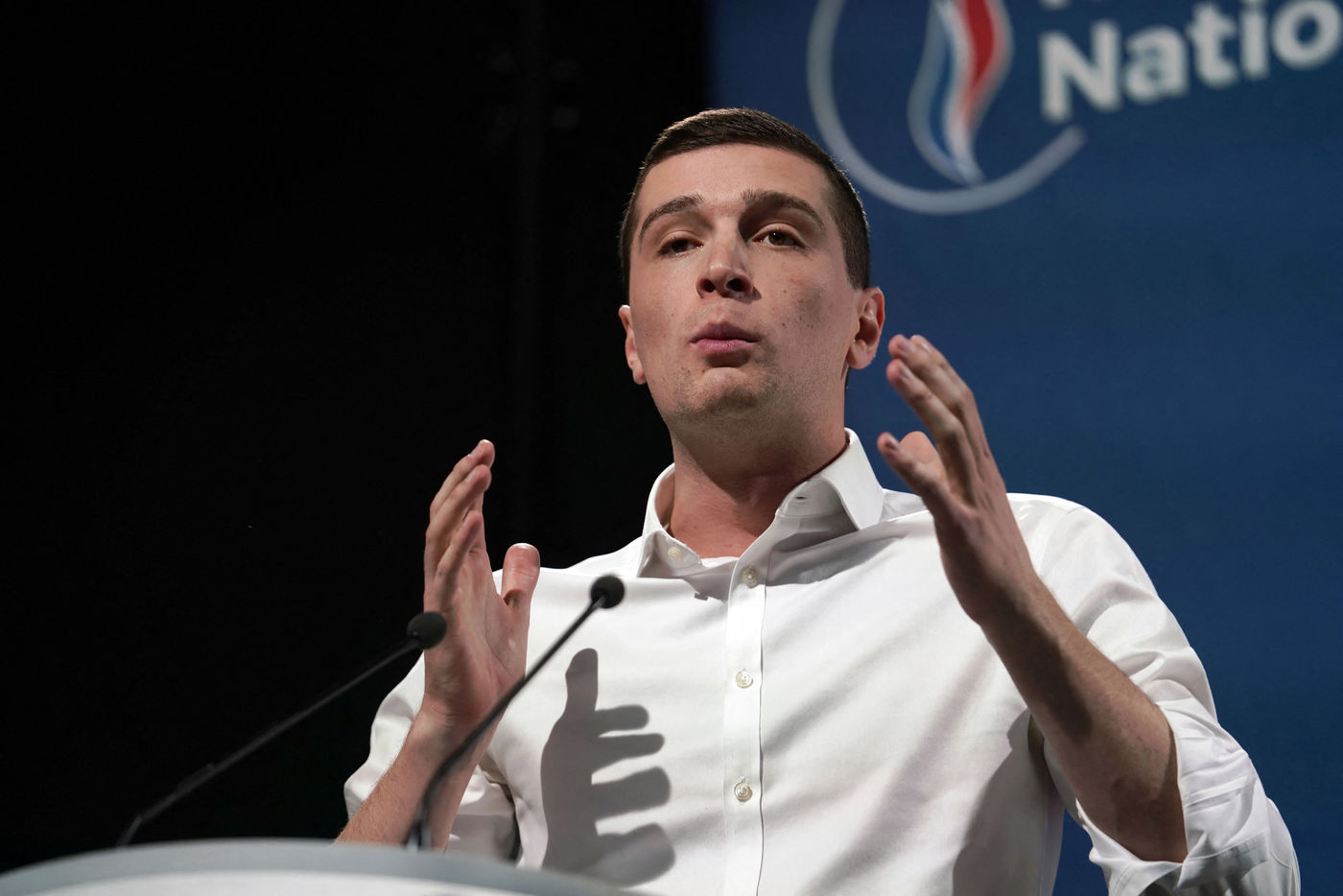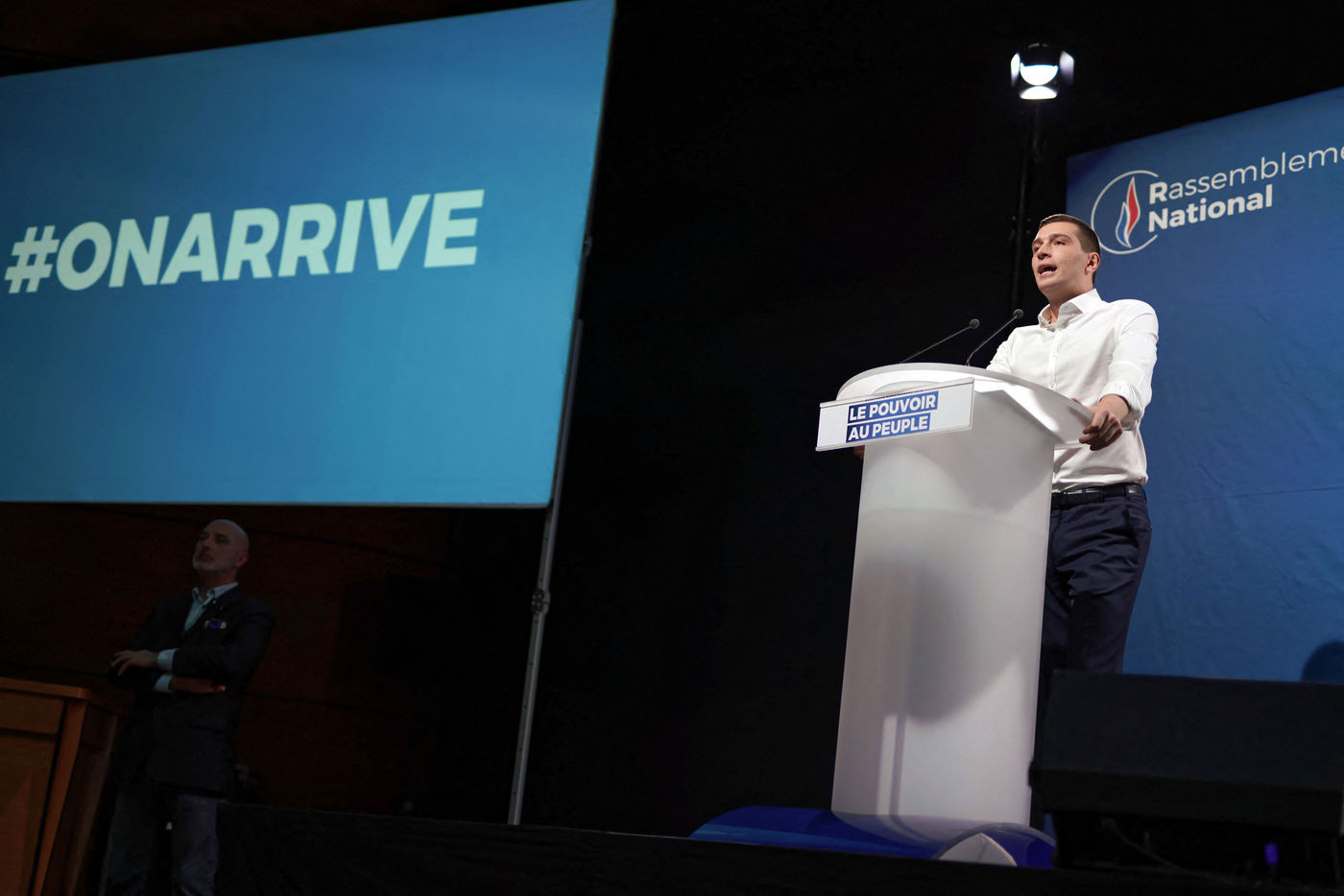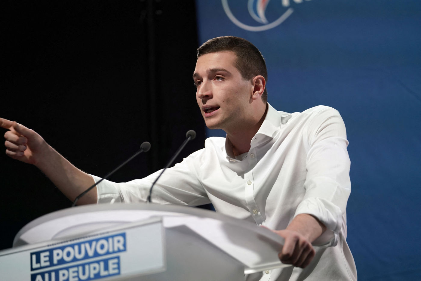 National Rally (RN), french far-right party of Marine Le Pen, meeting in Caudry (Northern France) with Marine Le Pen, Jordan Bardella, head of list, and Herve Juvin, candidate, for European Elections