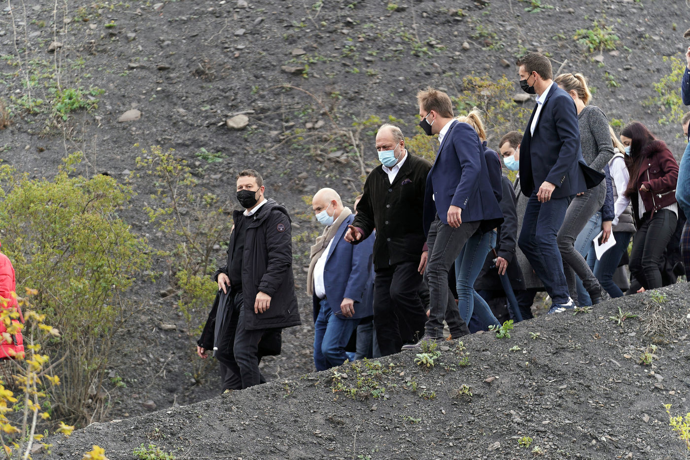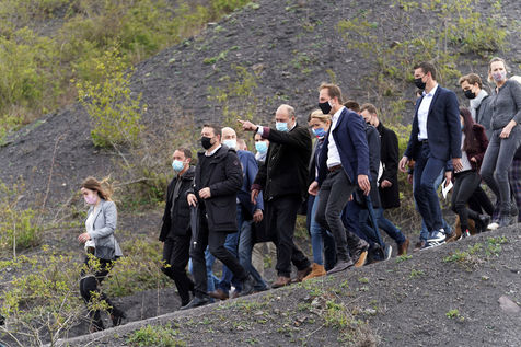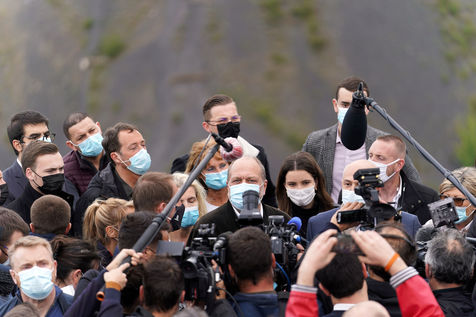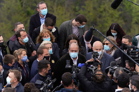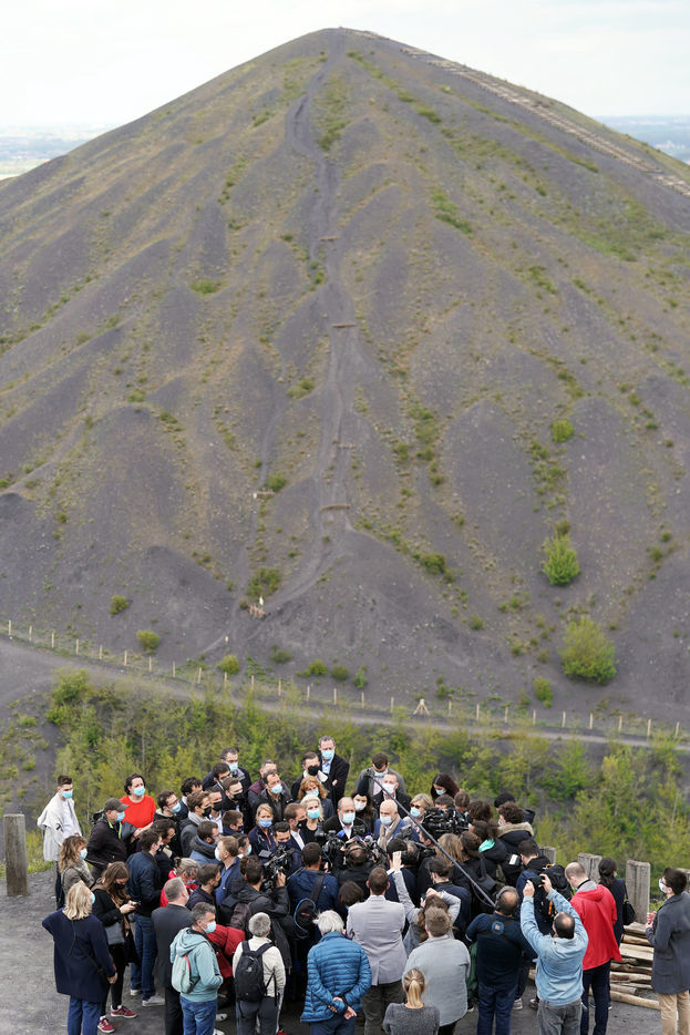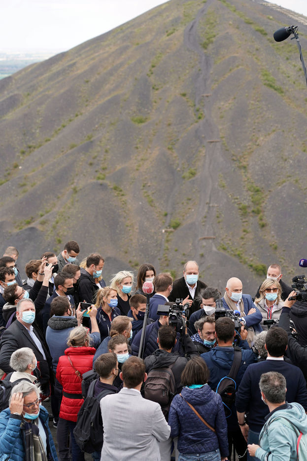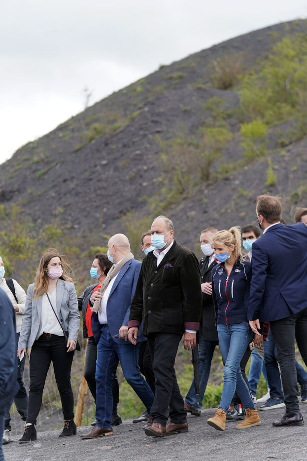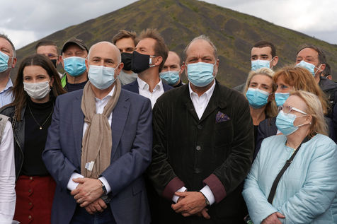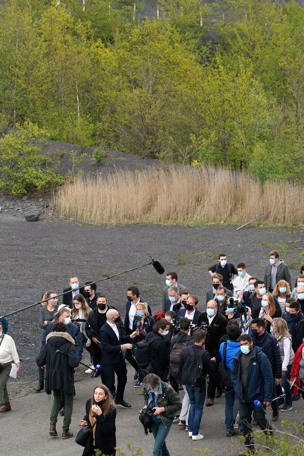 Eric Dupond-Moretti (LREM) campaigns in Loos-en-Gohelle, near Lens, Pas-de-Calais, France for upcoming regional election with head of list Laurent Pietraszewski, Thibaut Guilluy and Tiphaine Auziere (Brigitte Macron's daughter) on May 08, 2021.