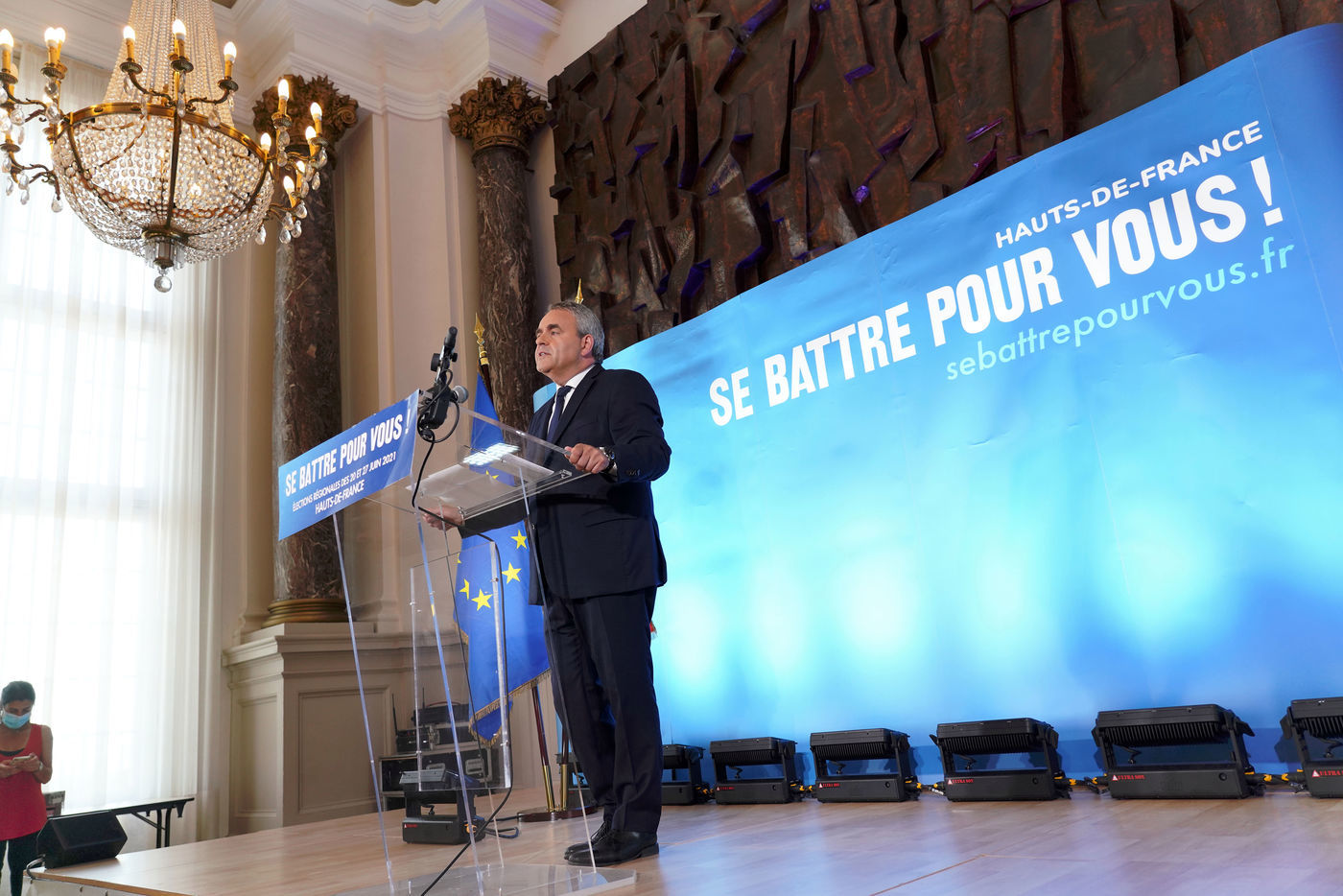 Soiree electorale de Xavier Bertrand a St Quentin pour le second tour des elections regionales et departementales le 27 Juin 2021