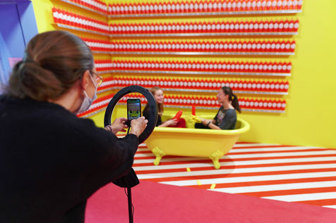 Ouverture à Lille, dans le nord de la France, du "Smile Safari", un musée Instagram et TikTok, le 30 octobre 2021. Environ 1000m² de décors dédiés à la prise de photos pour les réseaux sociaux.