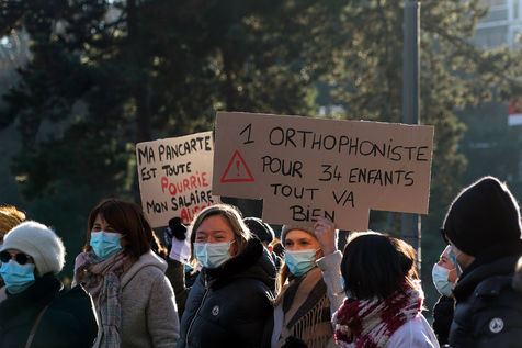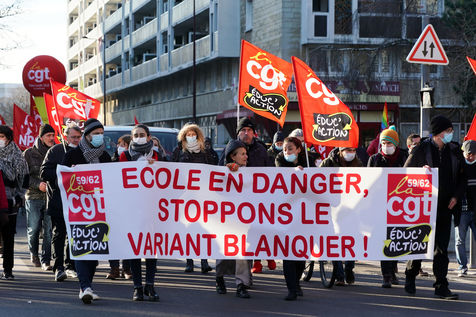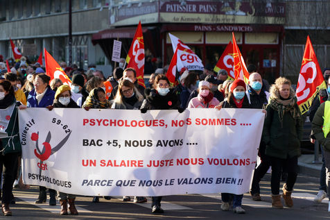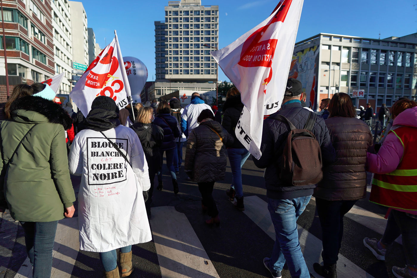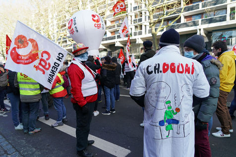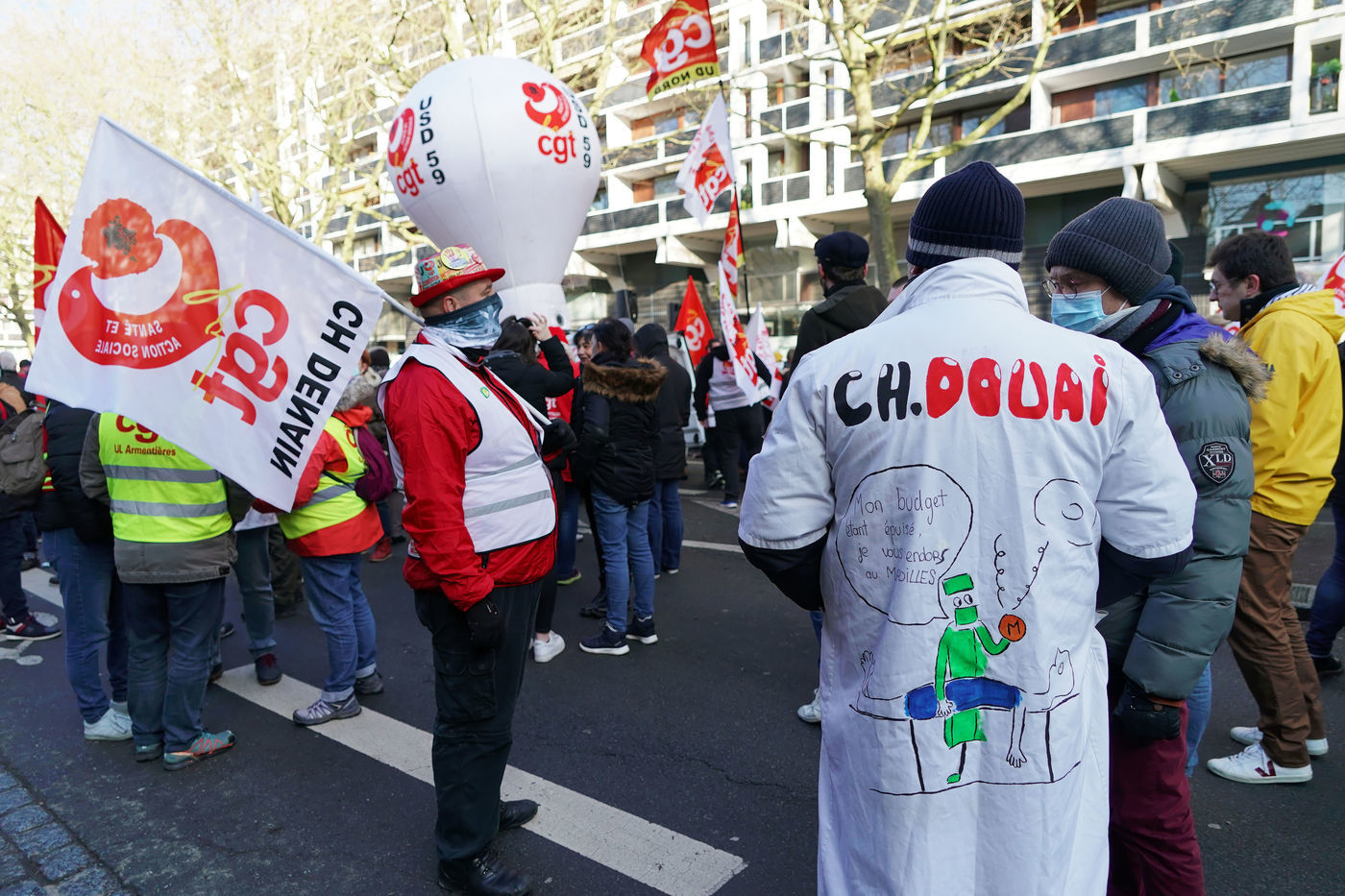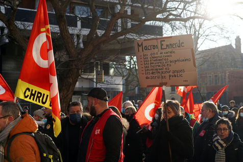 Health workers demonstrate in Lille, northern France on January 11, 2022, to protest against working conditions and the level of financial means for hospitals in France.