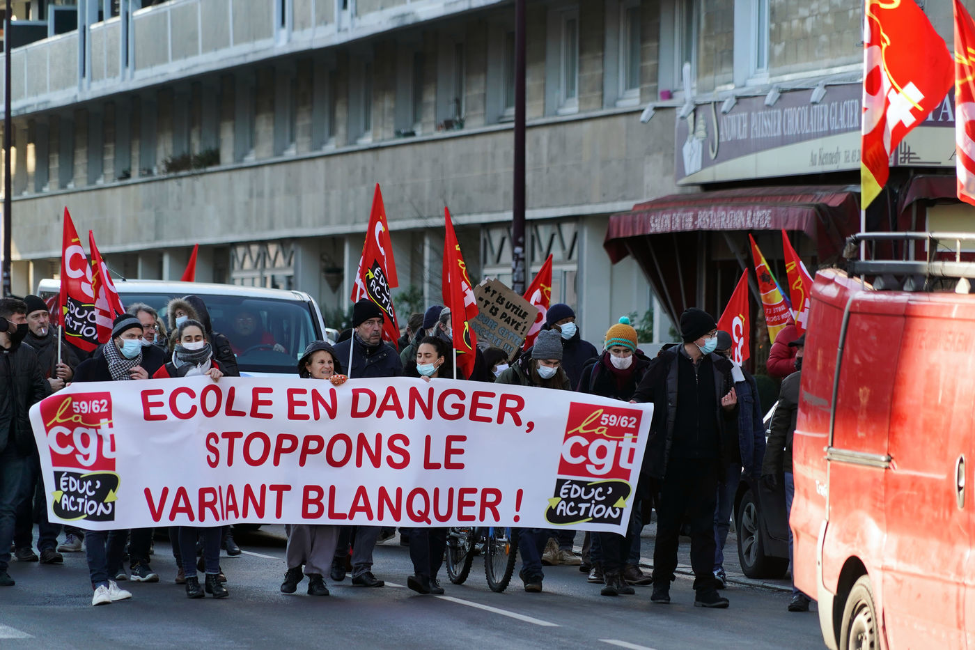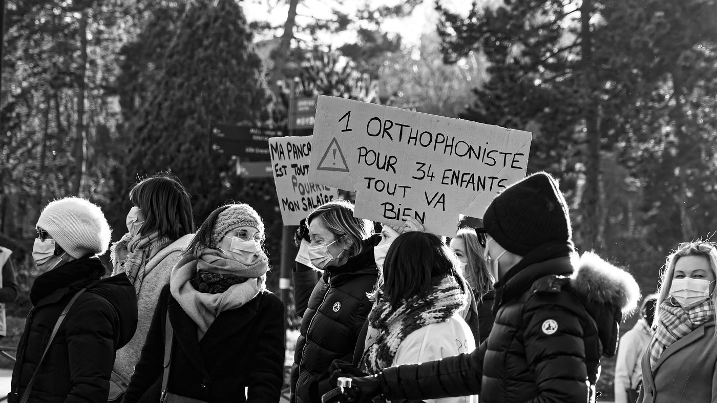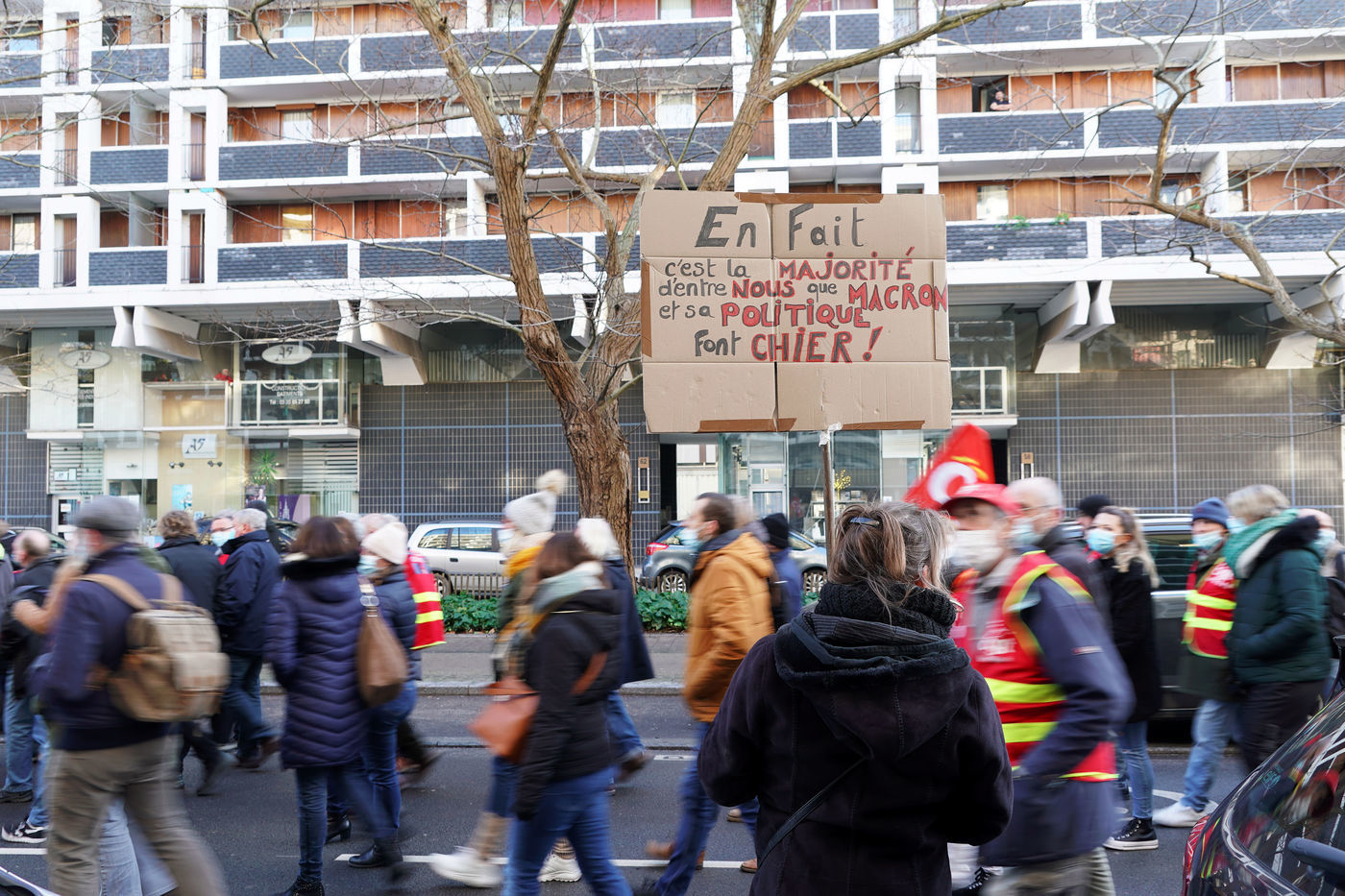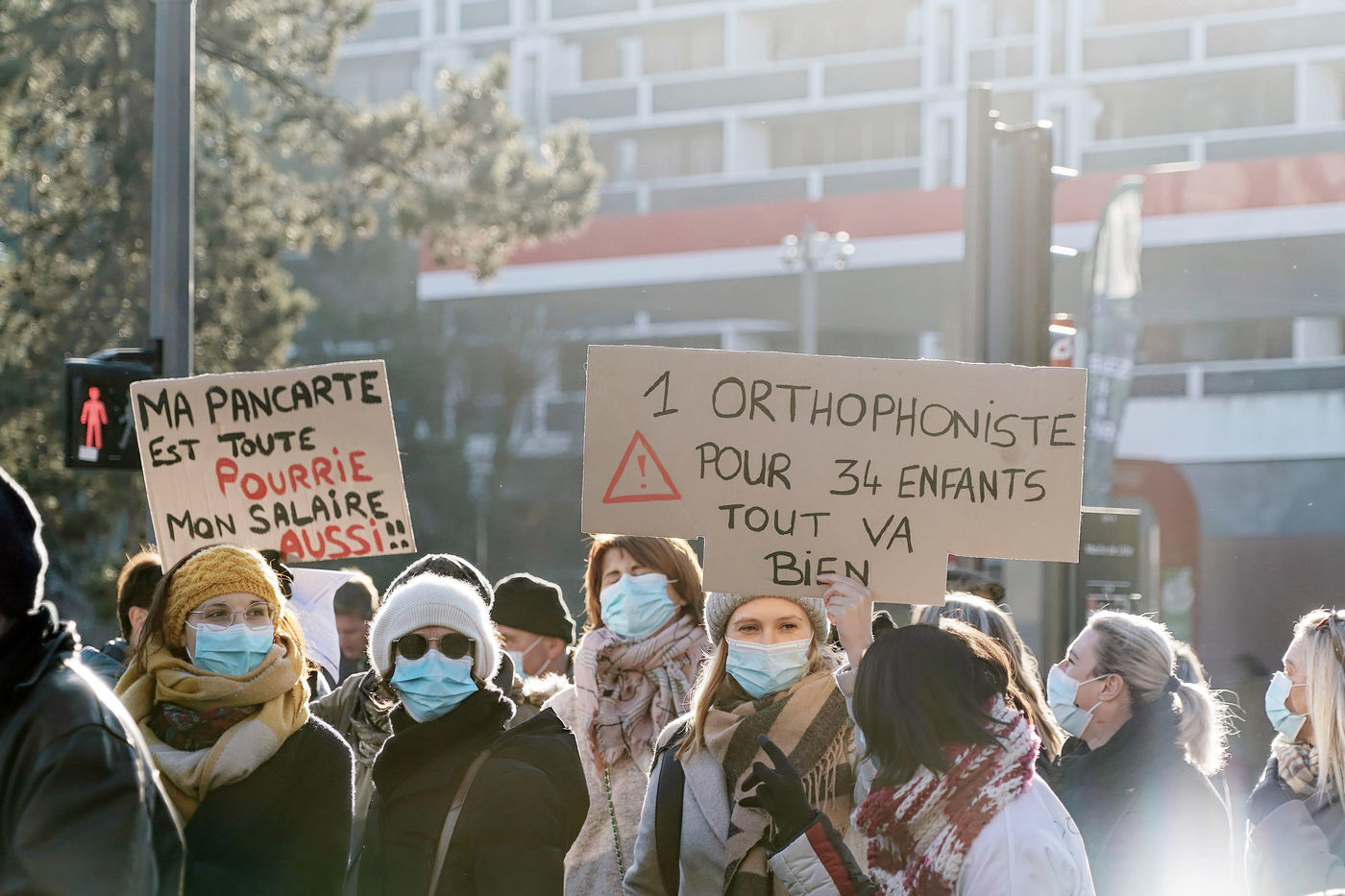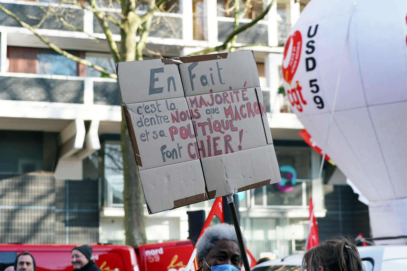 Des travailleurs de la santé manifestent à Lille, dans le nord de la France, le 11 janvier 2022, pour protester contre les conditions de travail et le niveau des moyens financiers des hôpitaux en France.